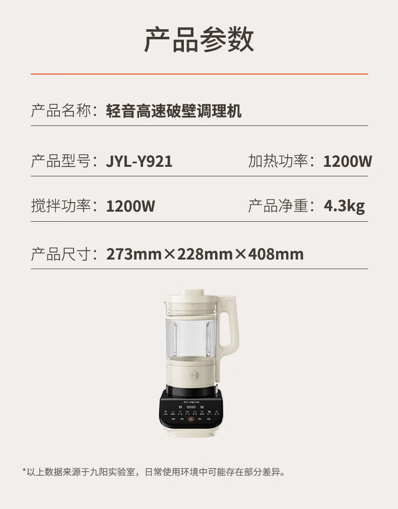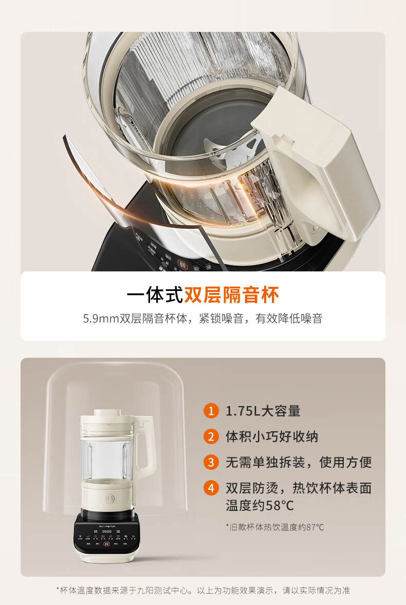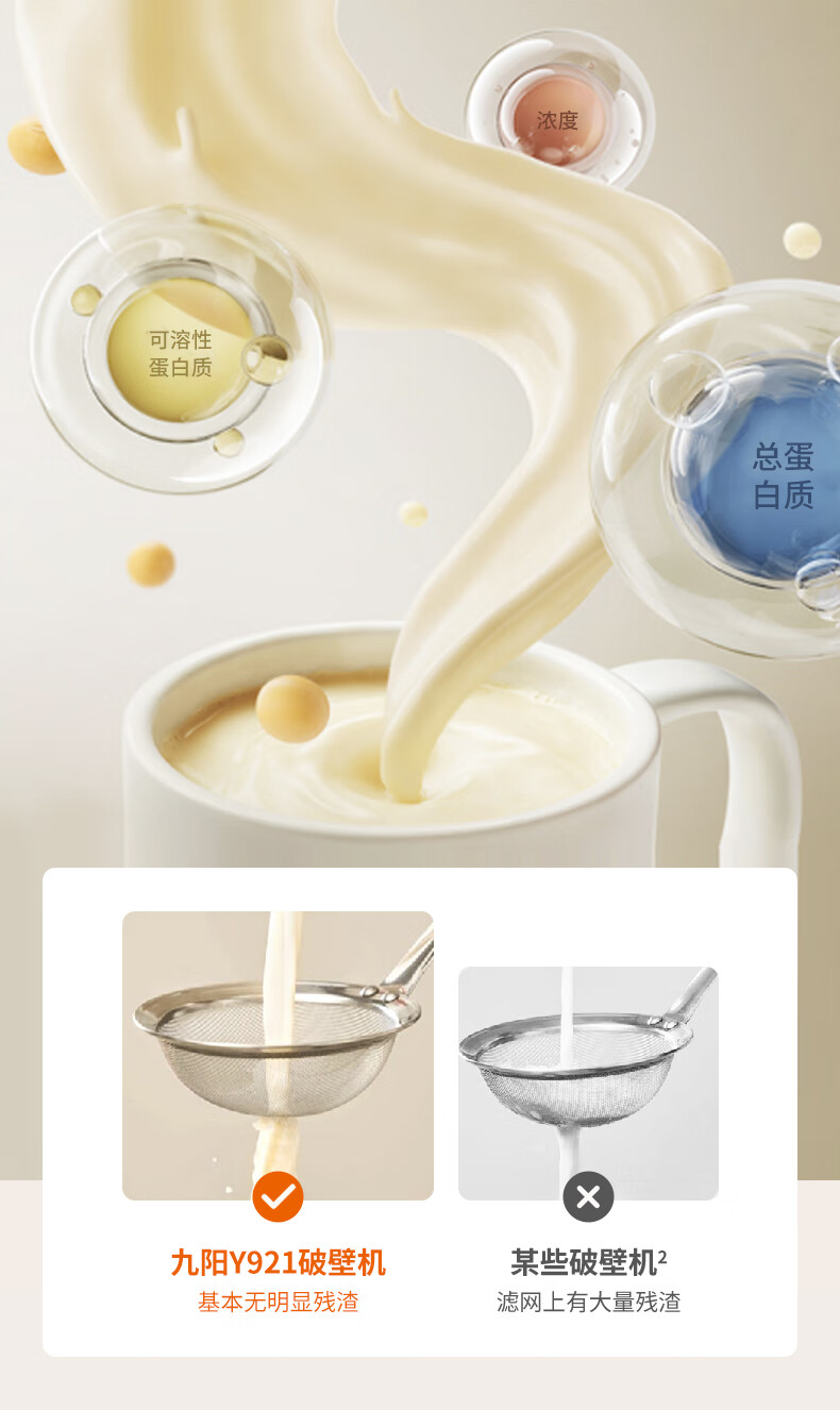 九阳破壁机家用免滤豆浆机全自动1.75L大容量轻音降噪多功能榨汁机料理机破壁机Y921 国家补贴