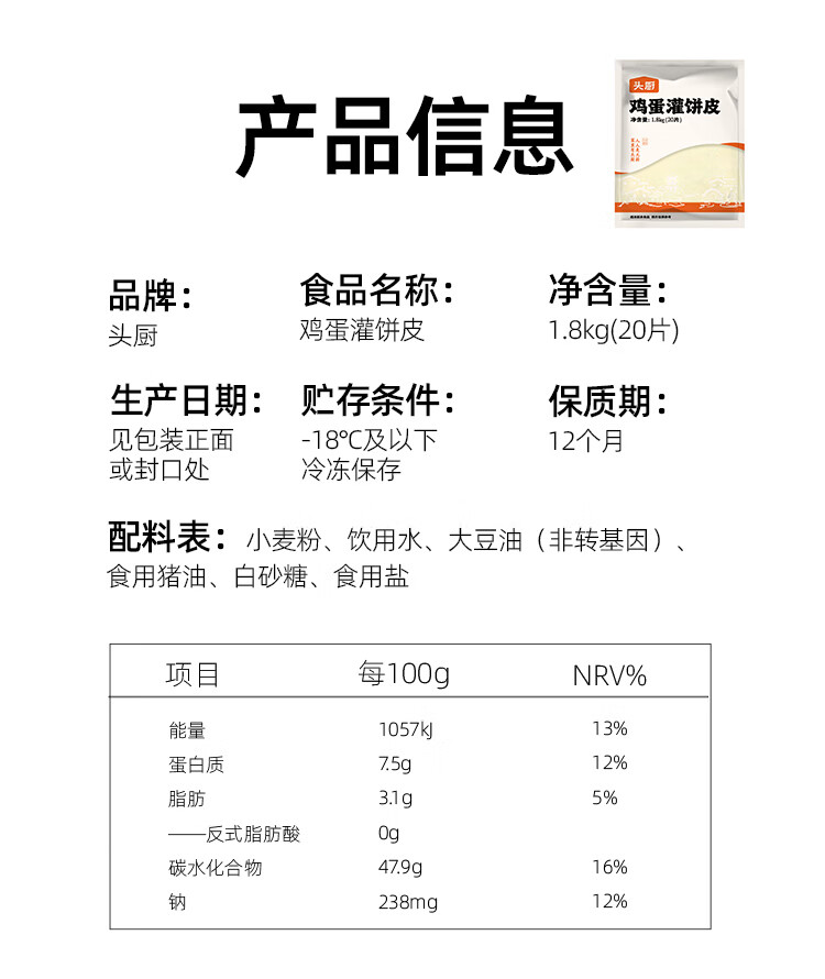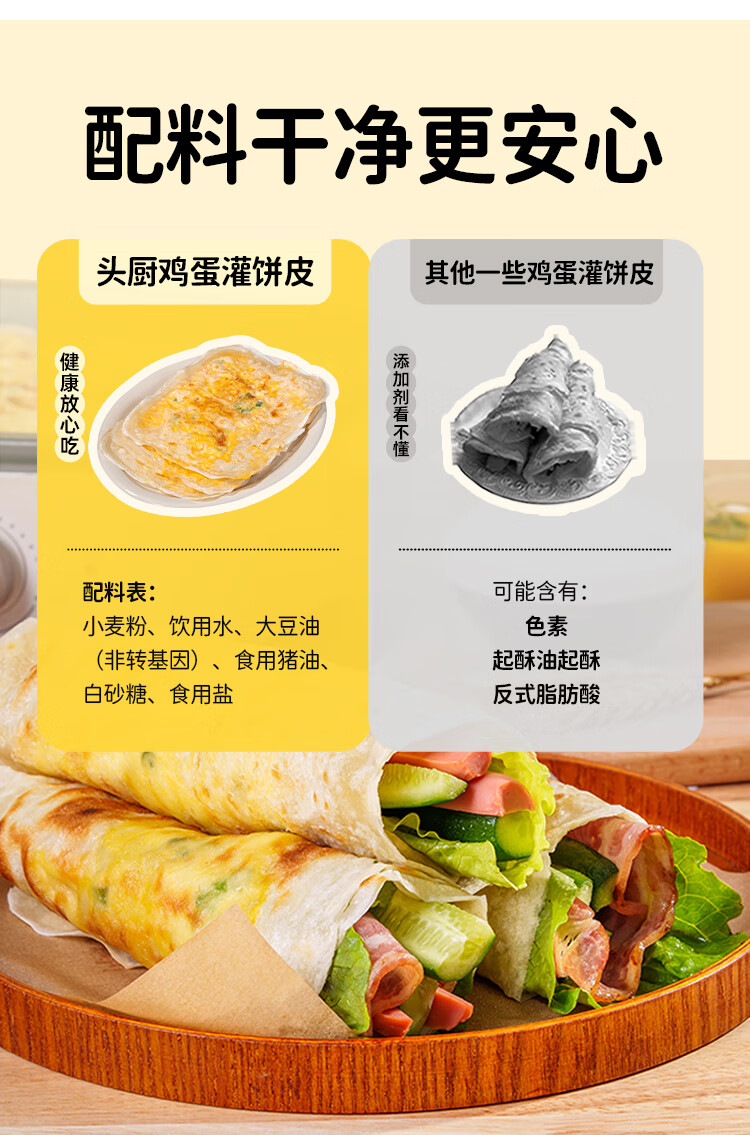 头厨原味鸡蛋灌饼皮1.8kg共20片早餐手抓饼卷饼 学生早餐食品半成品