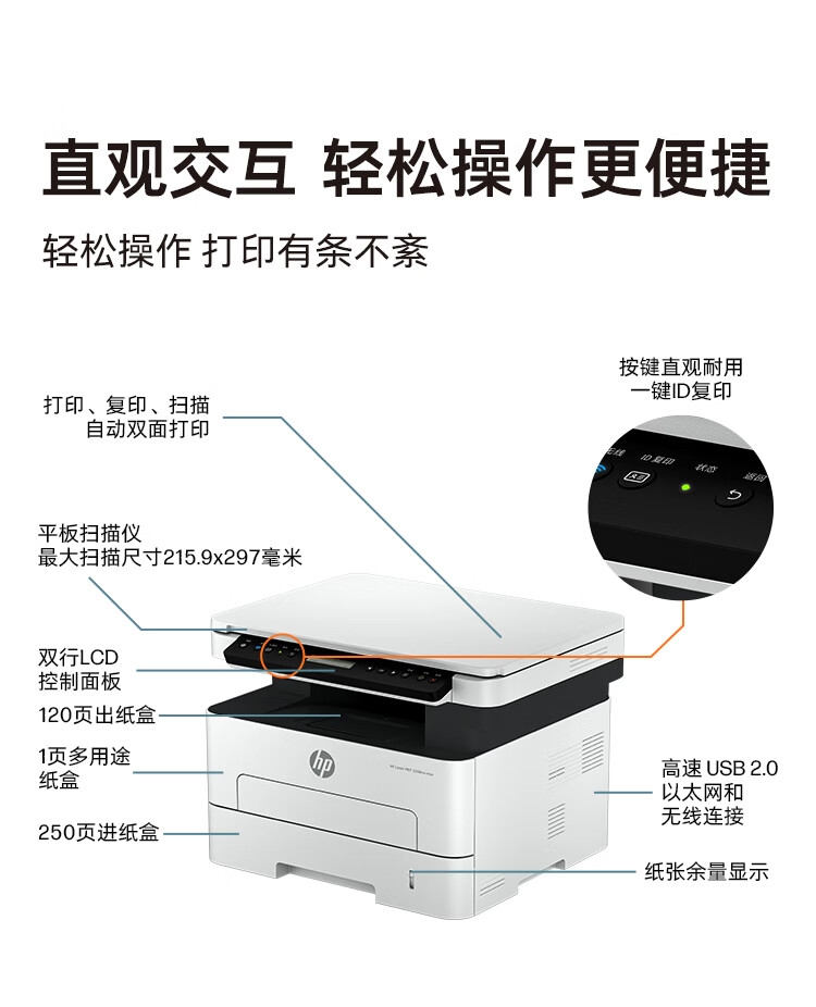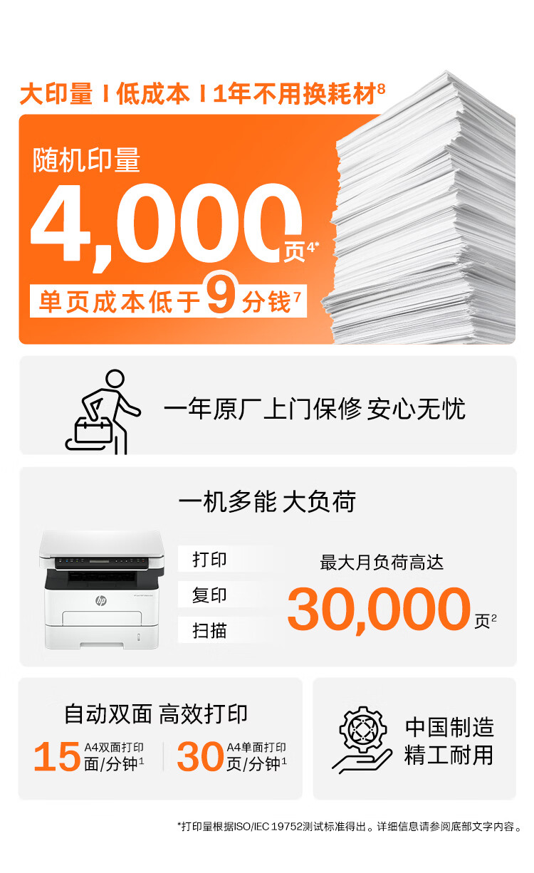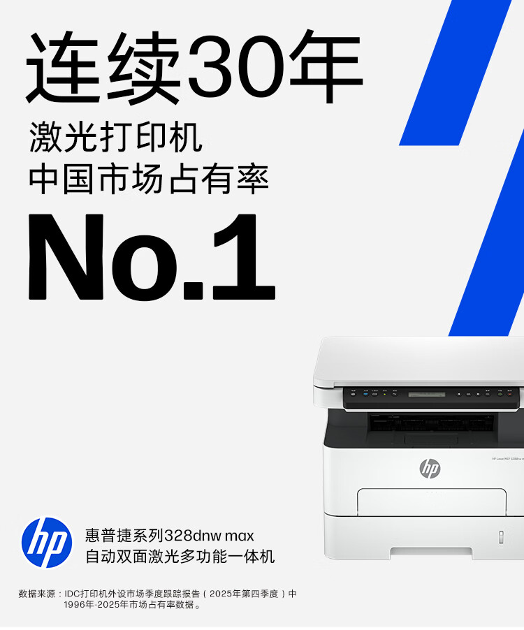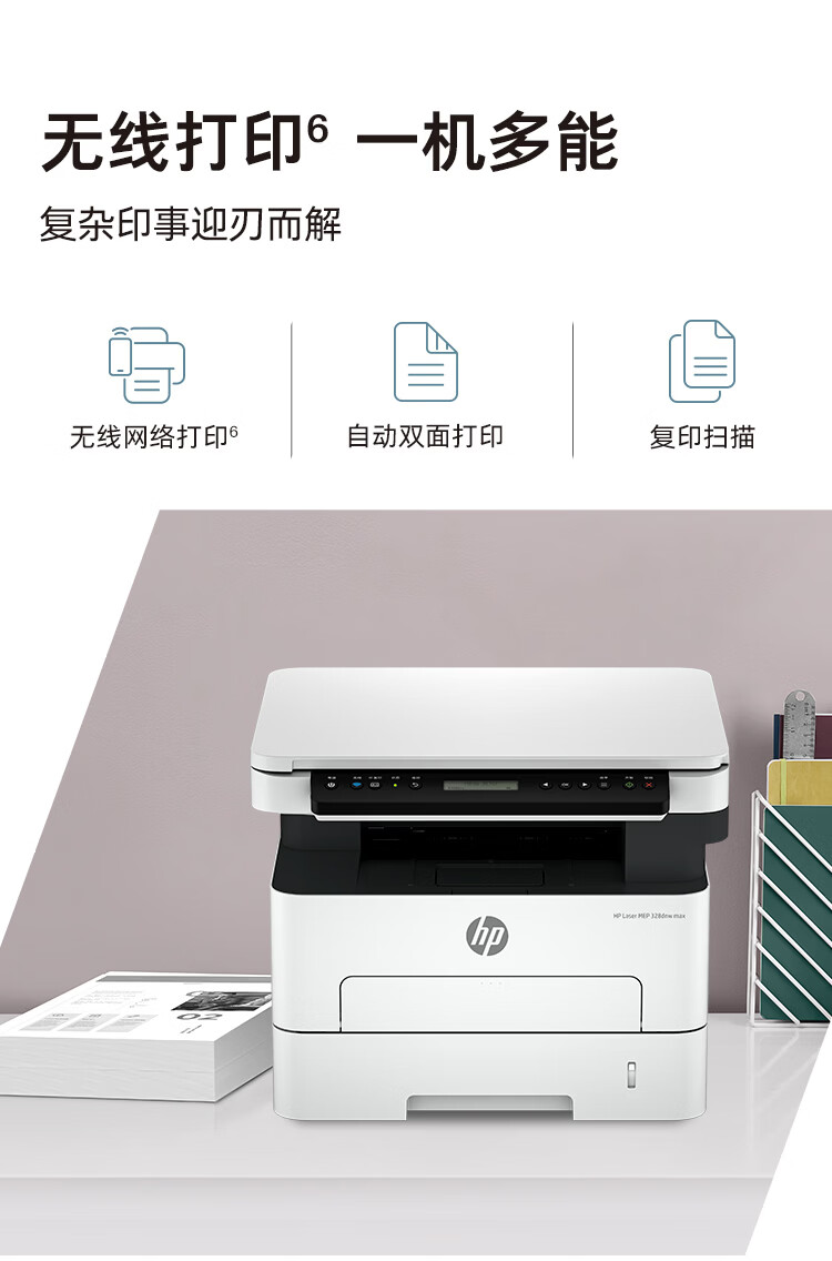 惠普(HP)328dnw Max黑白激光无线自动双面打印机 打印复印扫描 大印量办公室打印 高速打印 一年上门