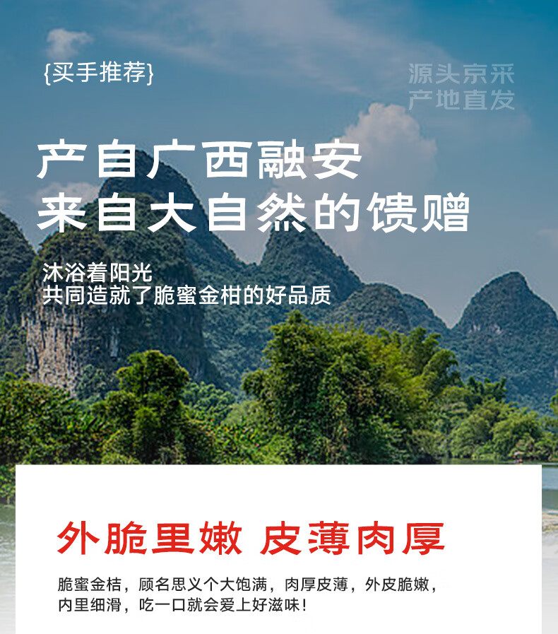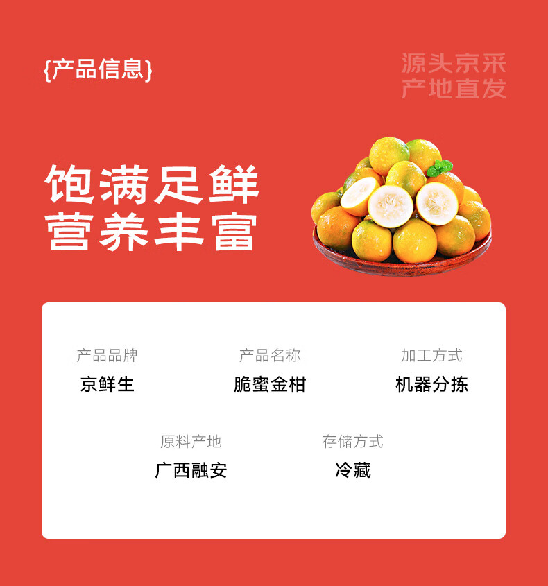 京觅广西融安 第三代脆蜜金桔净重3斤装单果32g+年货送礼源头直发包邮