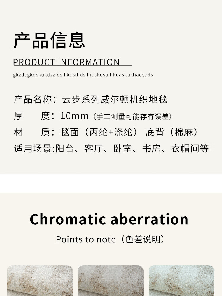 布迪思威尔顿机织工艺客厅地毯3D毯面轻奢高级感意式极简高端毯 云步N1-1001 140*200CM