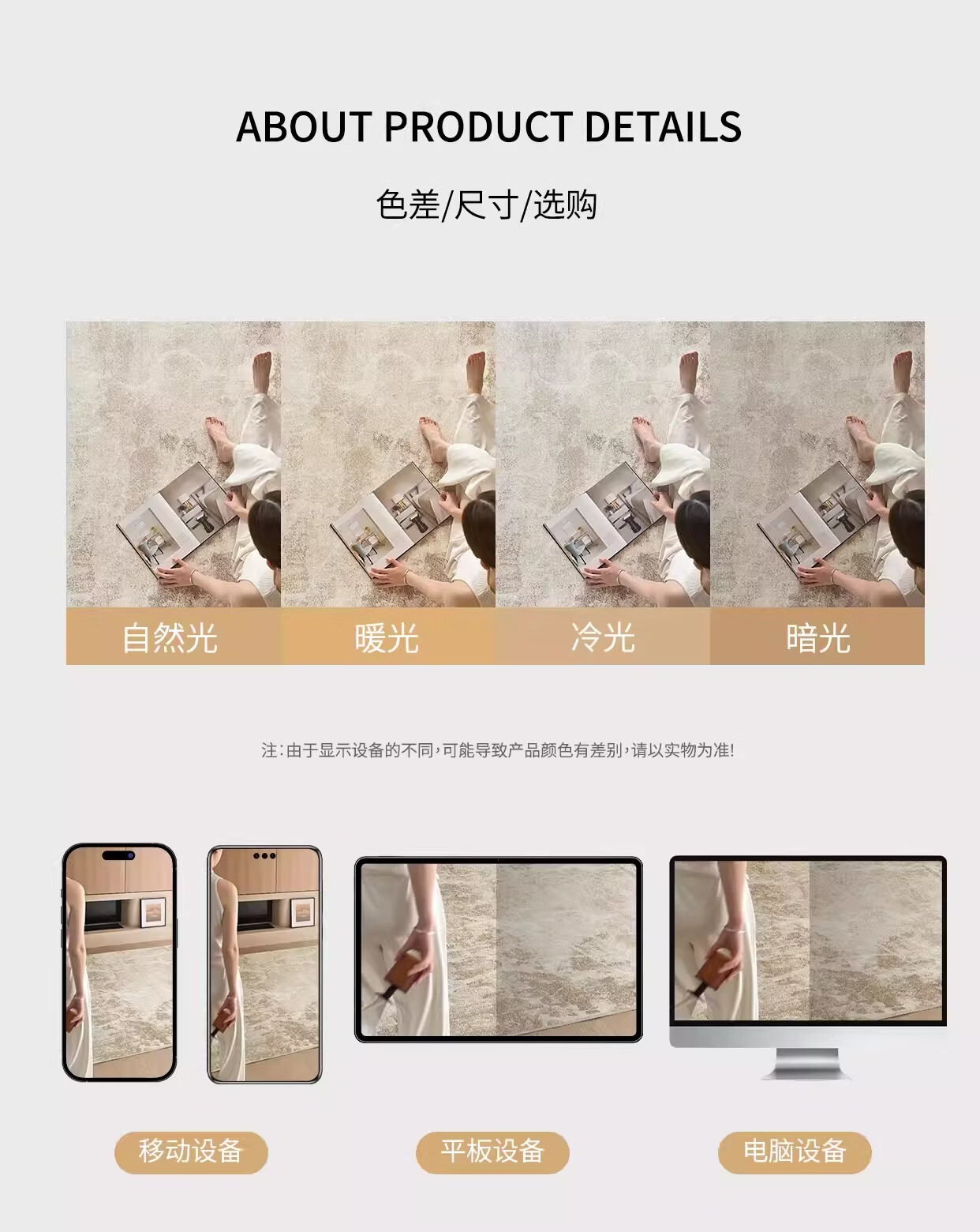 Y U-LIVE地毯客厅侘寂风2026新款轻奢高级全铺大面积免洗可擦沙发卧室 S仿羊绒-逐浪 200*300CM【客厅优选尺寸】