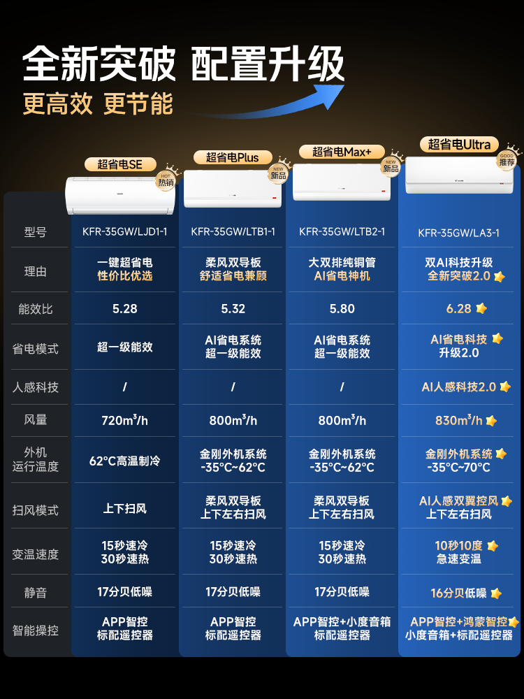 海尔统帅空调 超省电Ultra神机 双排纯铜管 1.5匹超一级变频冷暖空调挂机 国家补贴KFR-35GW/LA3-1
