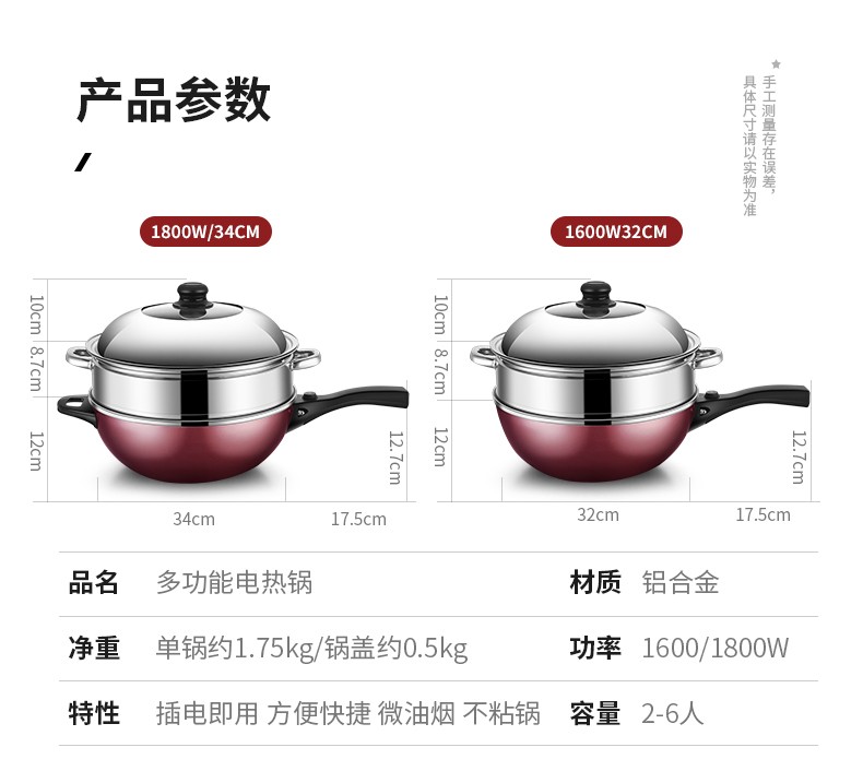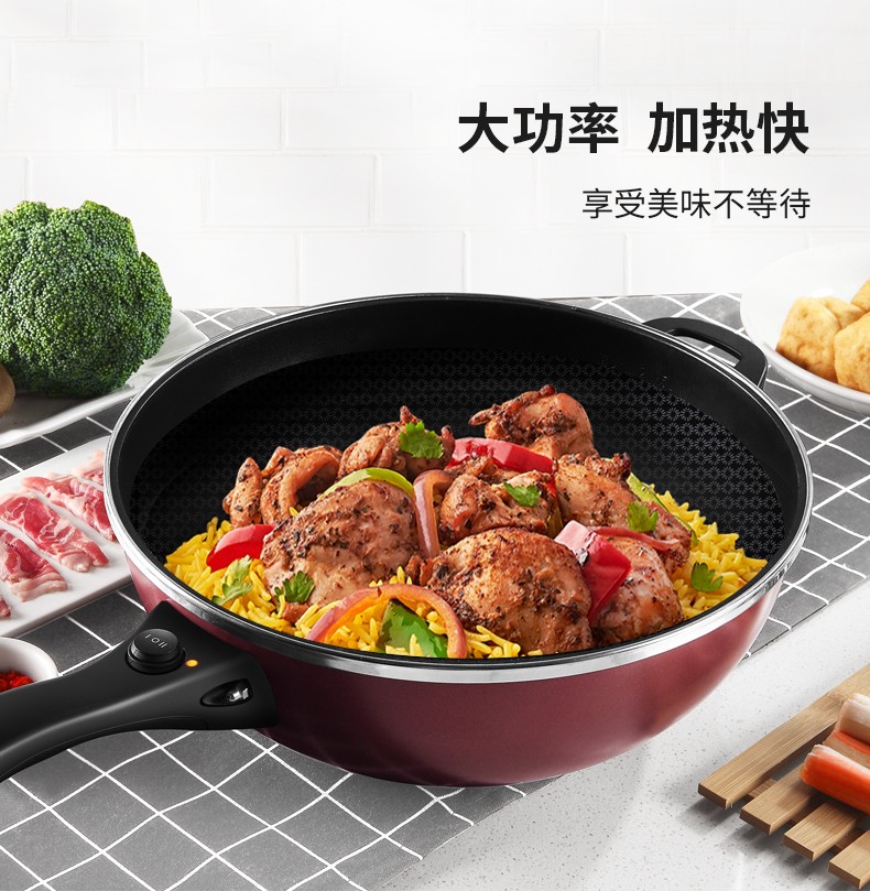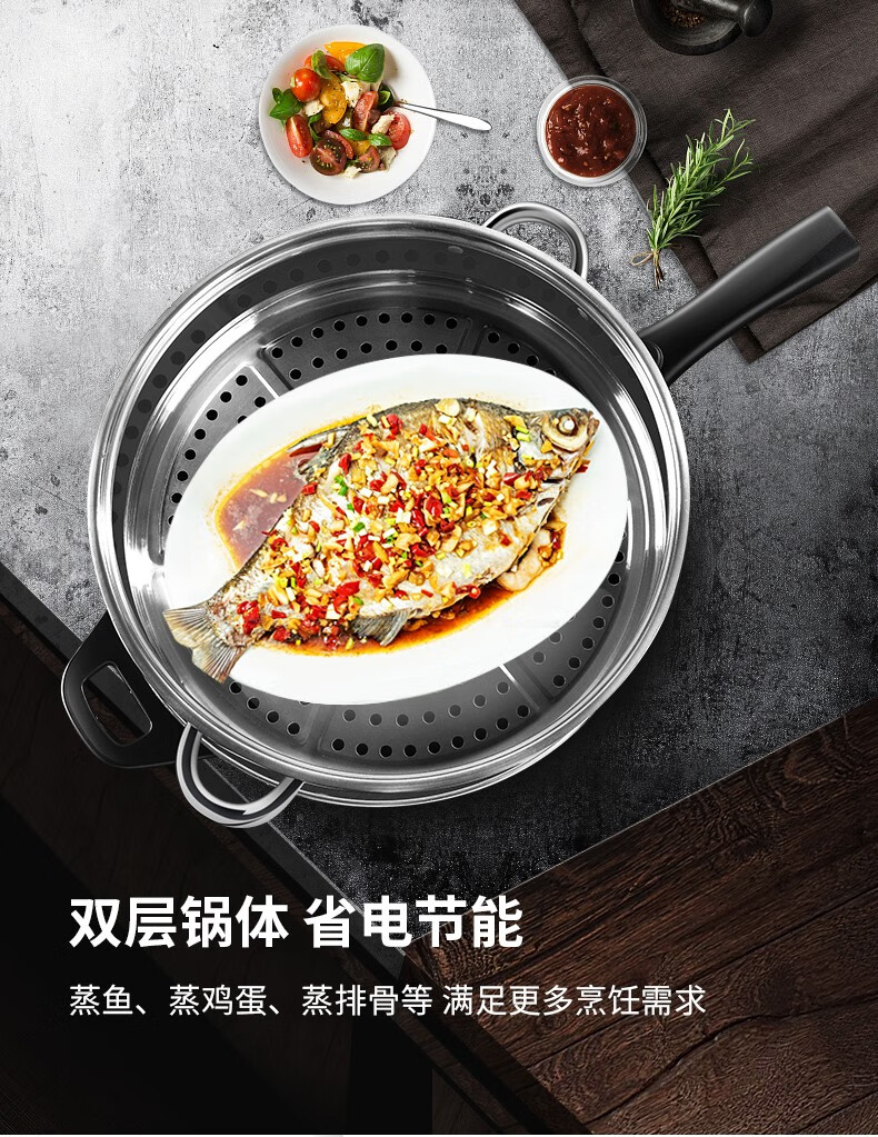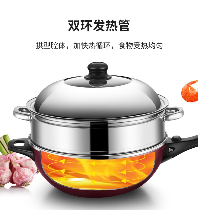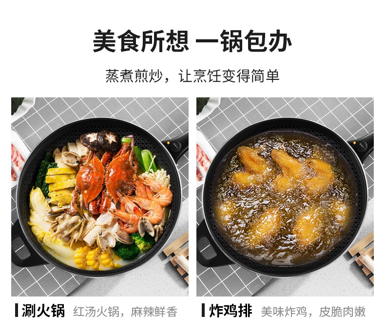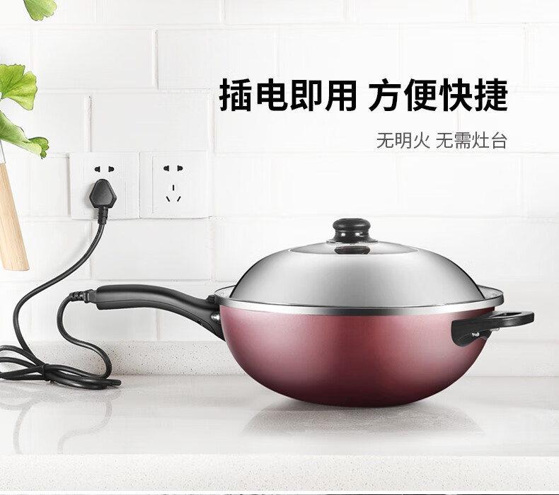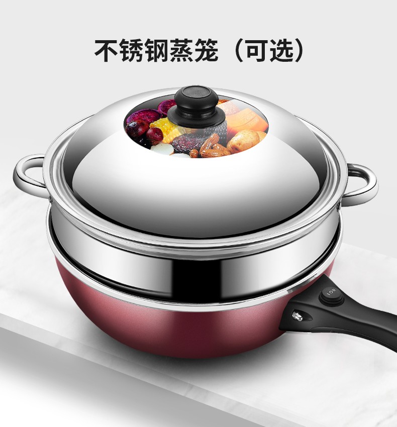 易欣 电炒锅电用炒锅家用电炒菜锅一体式电小炒锅多功能蒸煮炒锅电锅 4.5L 1600W32CM礼包套餐