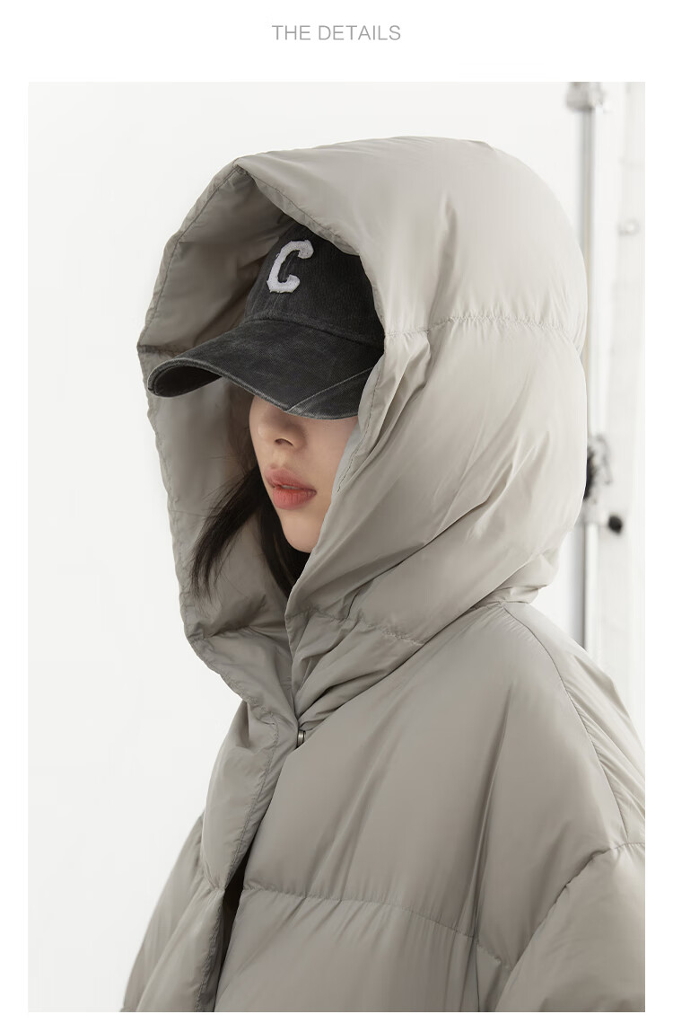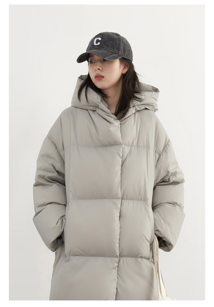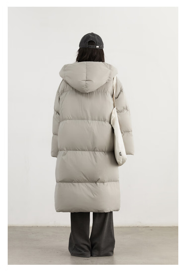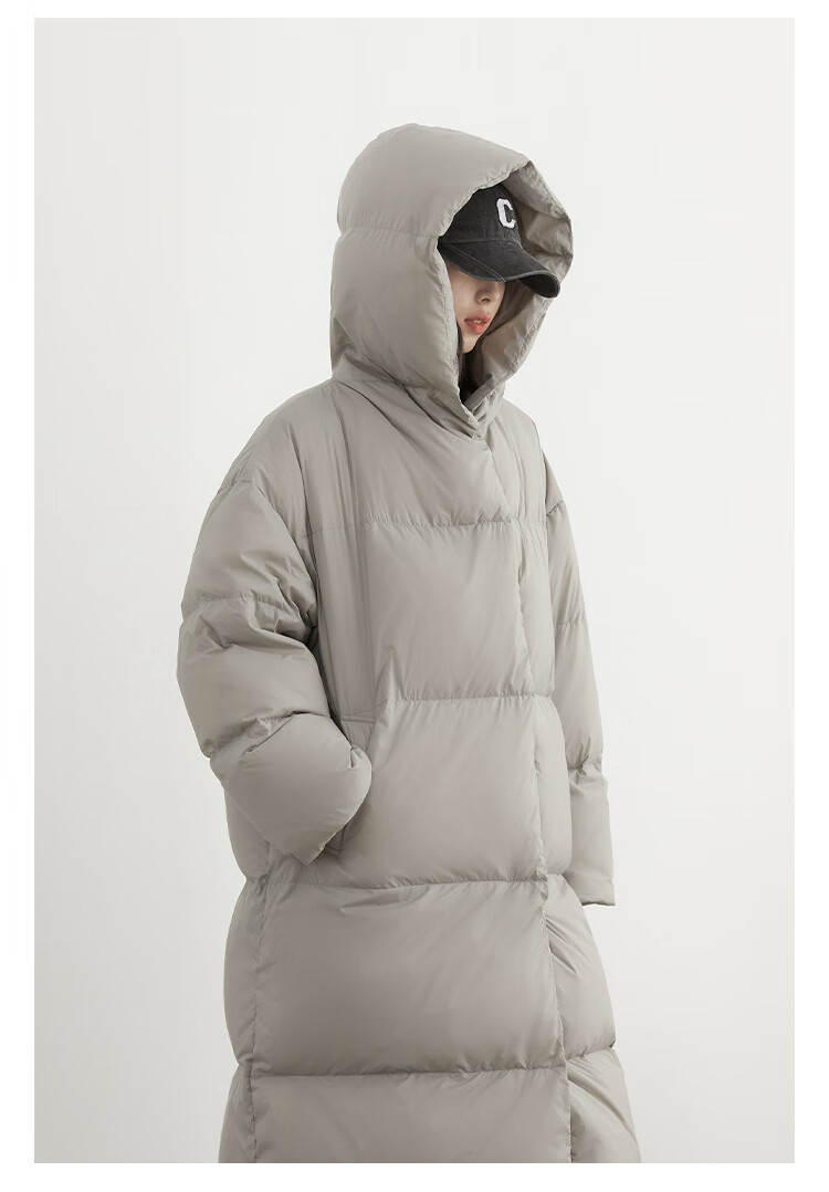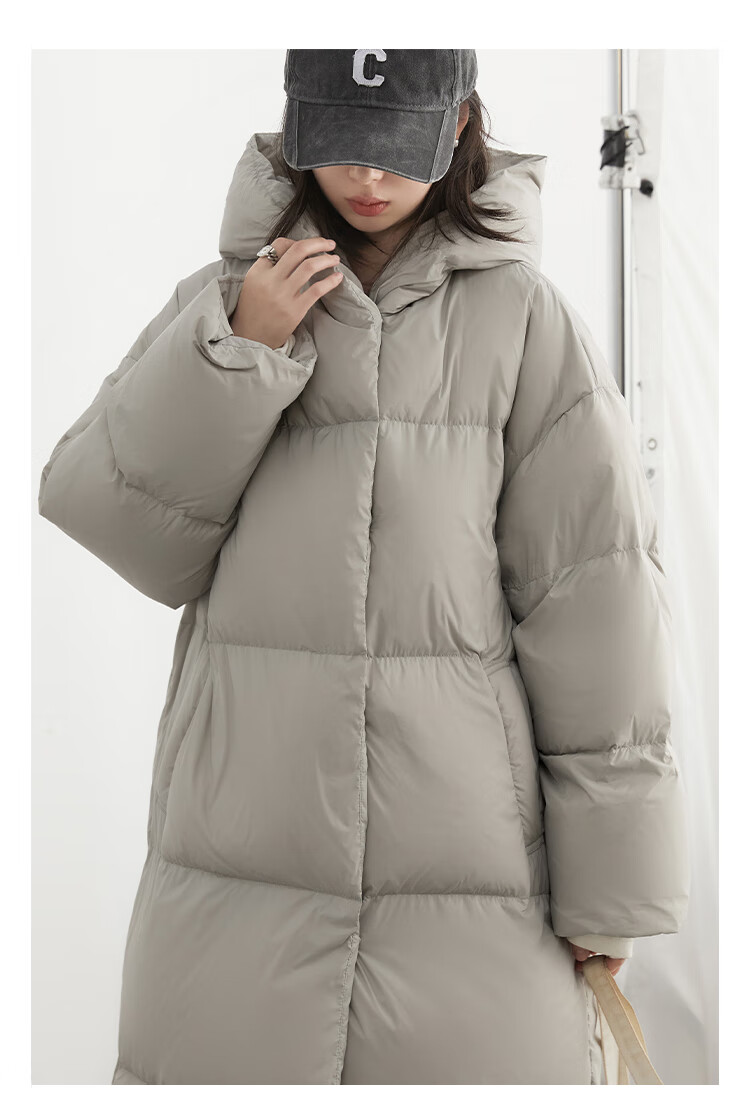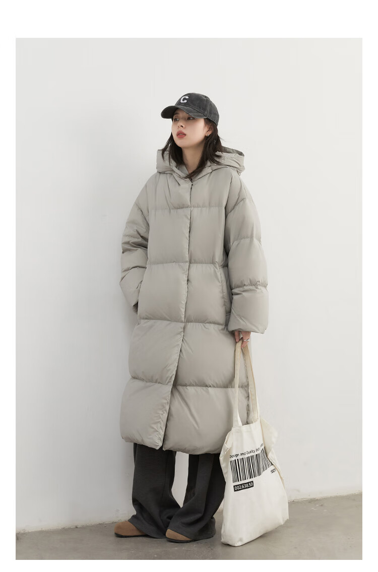 CHIC VEN 冬季新款极简连帽长款羽绒服女轻盈过膝防寒保暖外套女chicven 信鸽灰 S (43-55公斤)