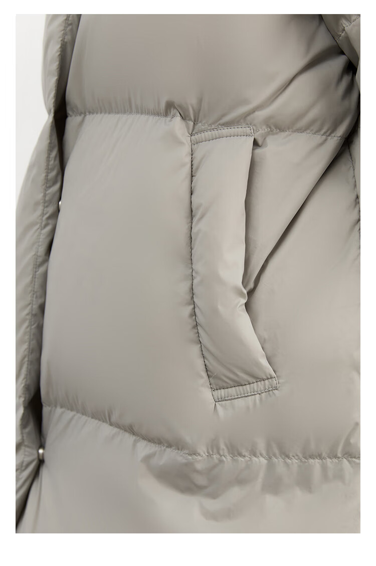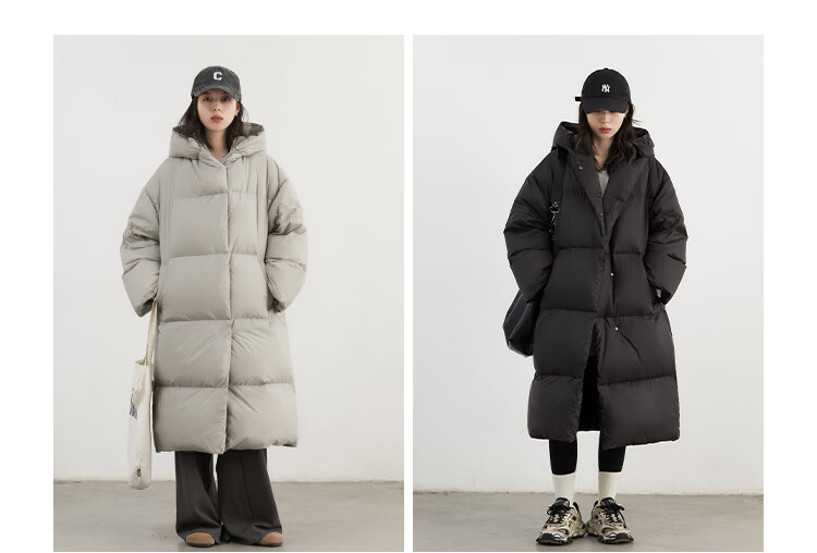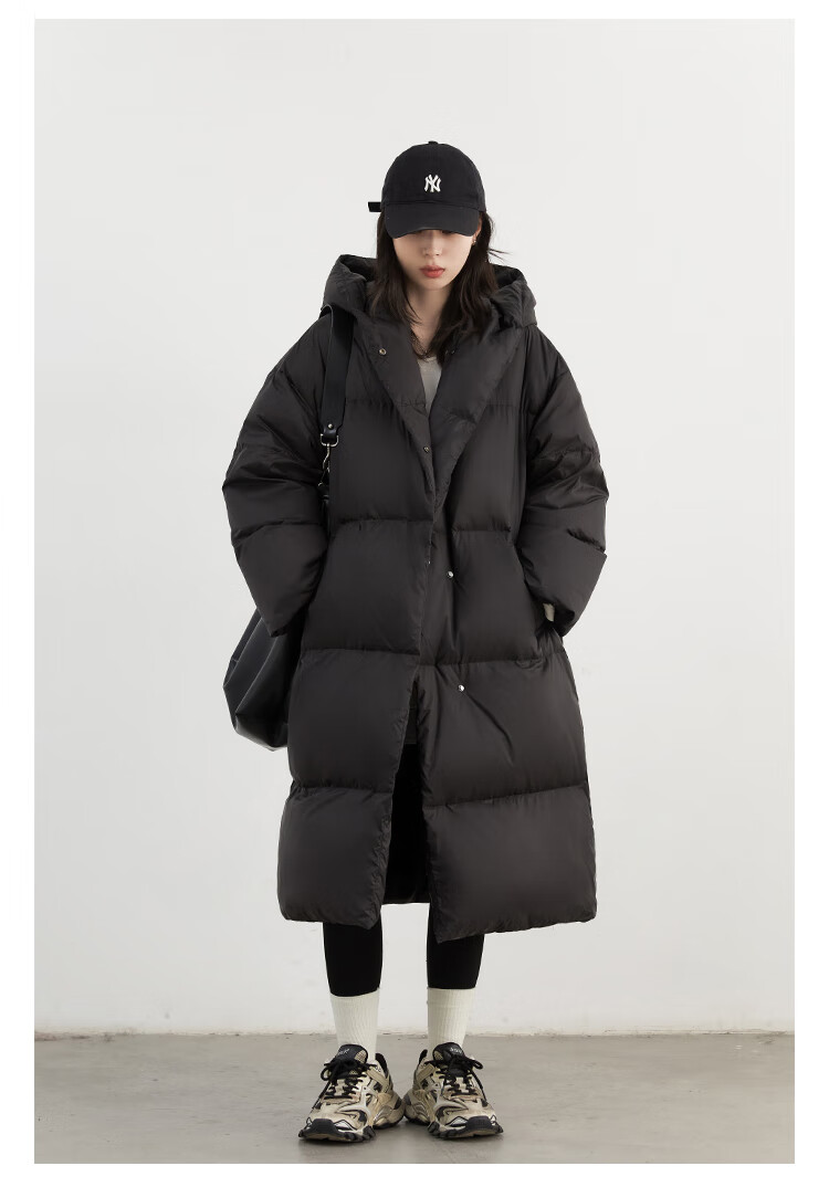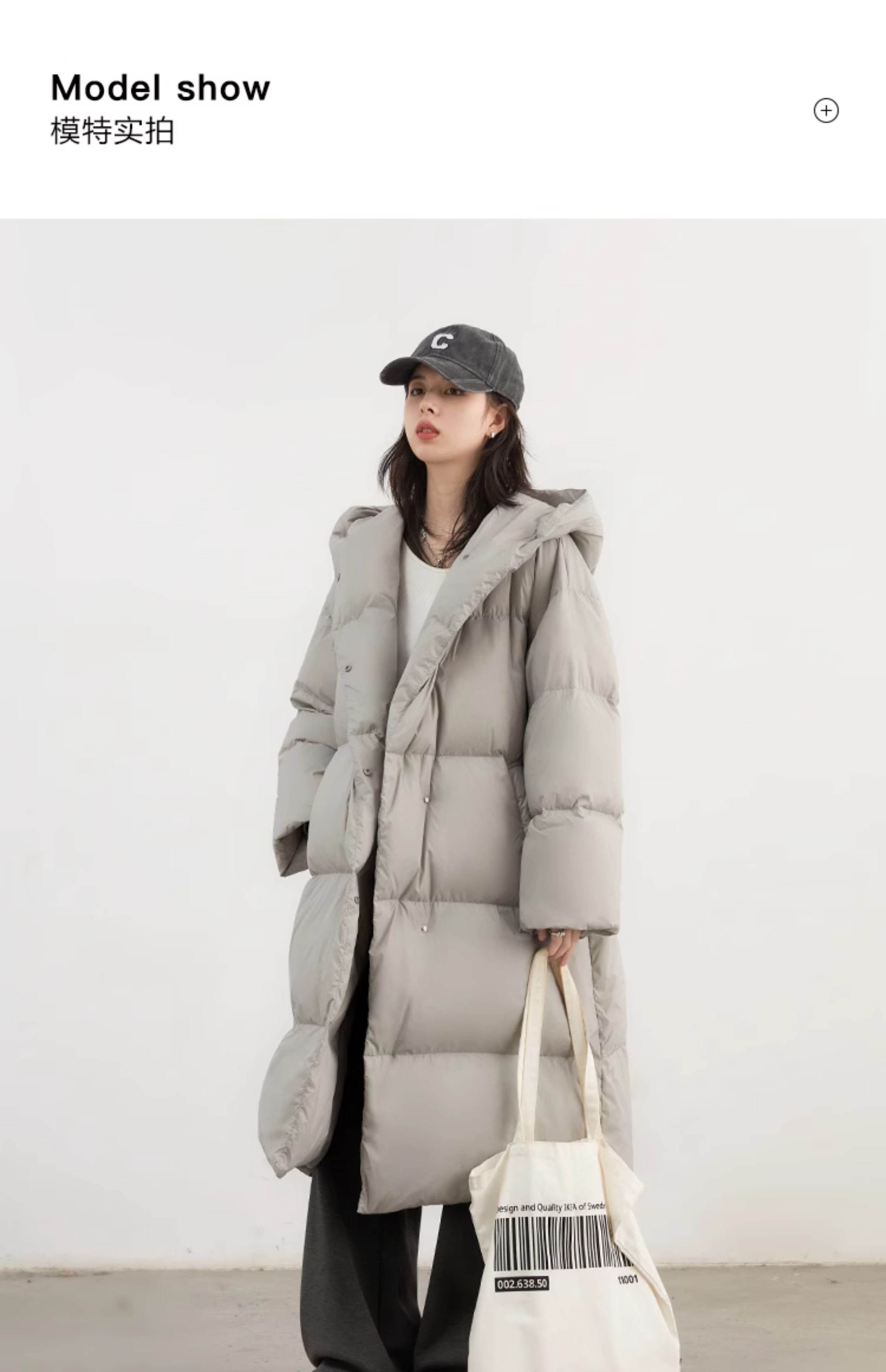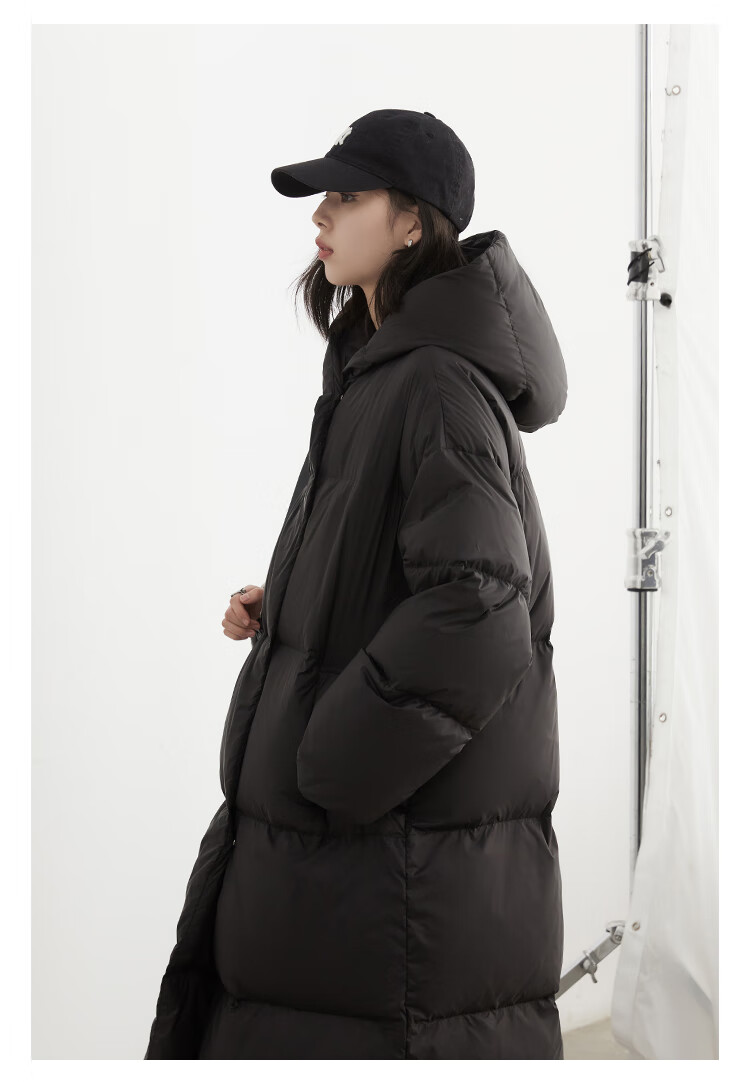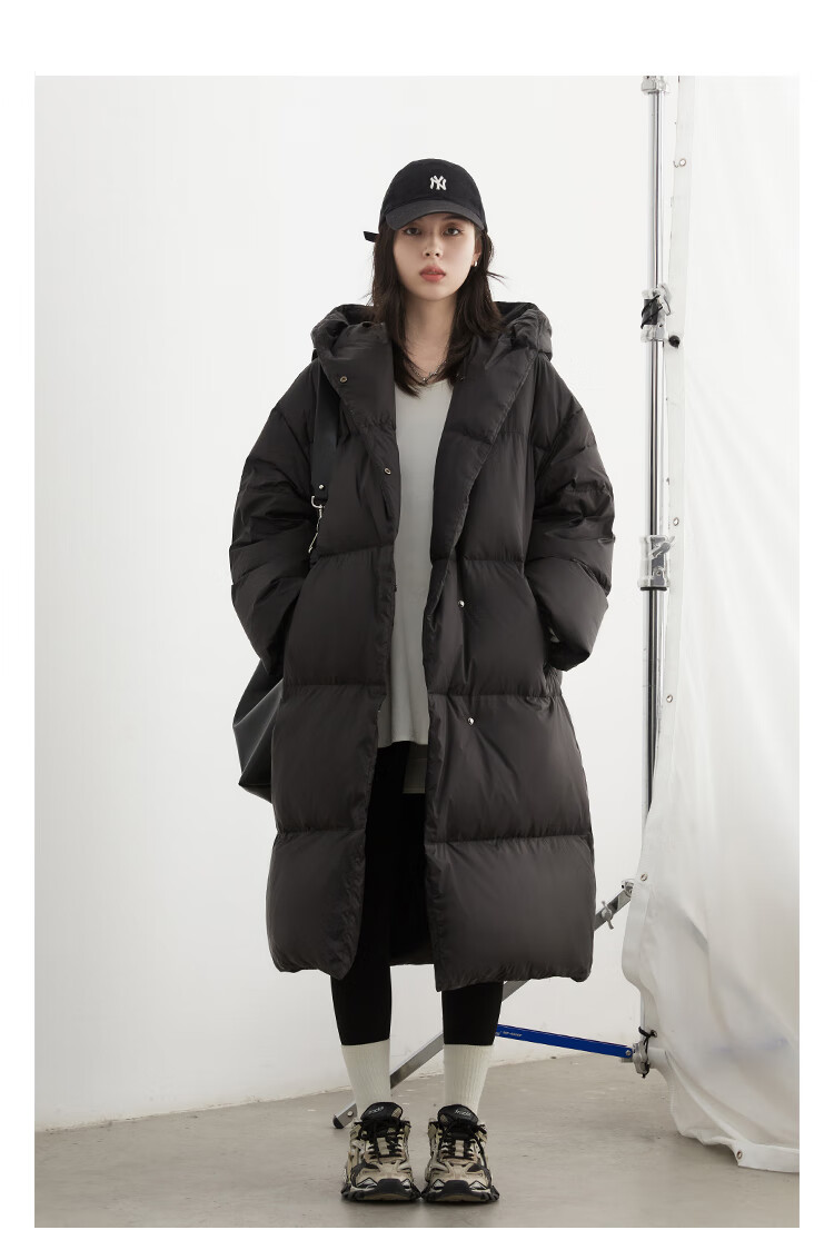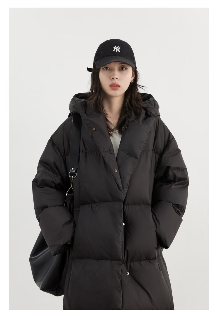 CHIC VEN 冬季新款极简连帽长款羽绒服女轻盈过膝防寒保暖外套女chicven 信鸽灰 S (43-55公斤)