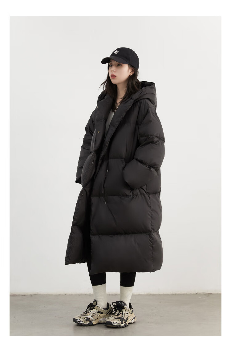 CHIC VEN 2025冬季新款80白鸭绒防风保暖连帽羽绒服外套女chicven 12180-黑色(80白鸭绒) S 【尺码偏大,建议拍小一码】