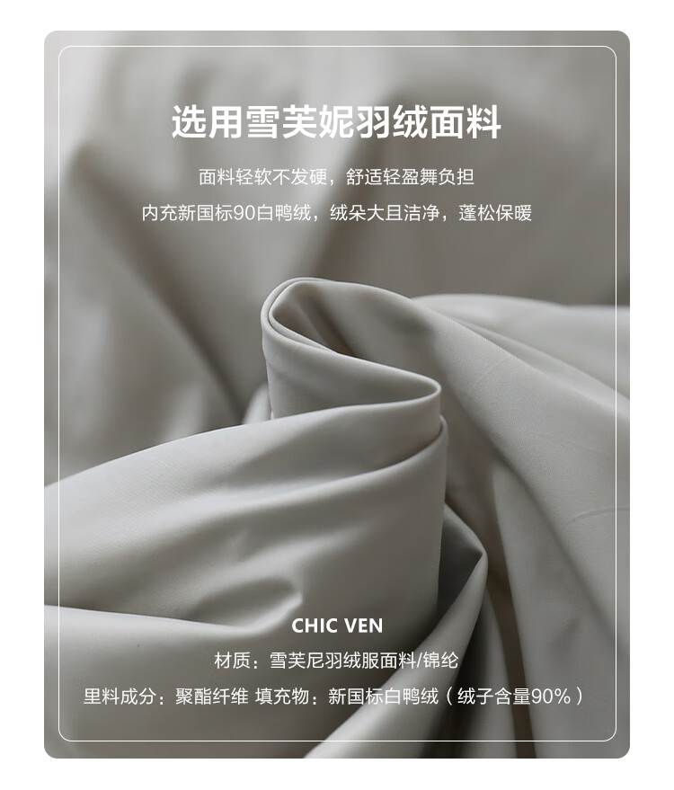 CHIC VEN 2025冬季新品90白鸭绒保暖三防立领短款羽绒服外套女chicven 黑色 M