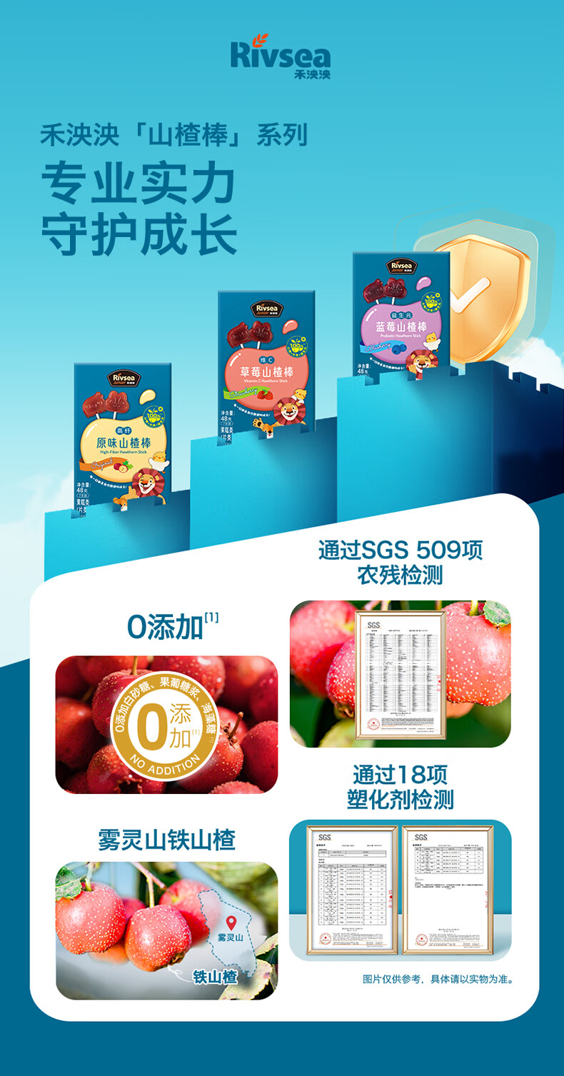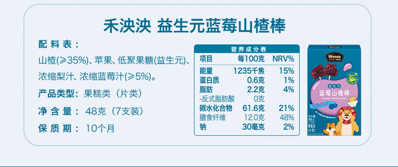 禾泱泱益生元蓝莓山楂棒48g儿童宝宝零食富含膳食纤维水果条