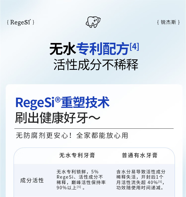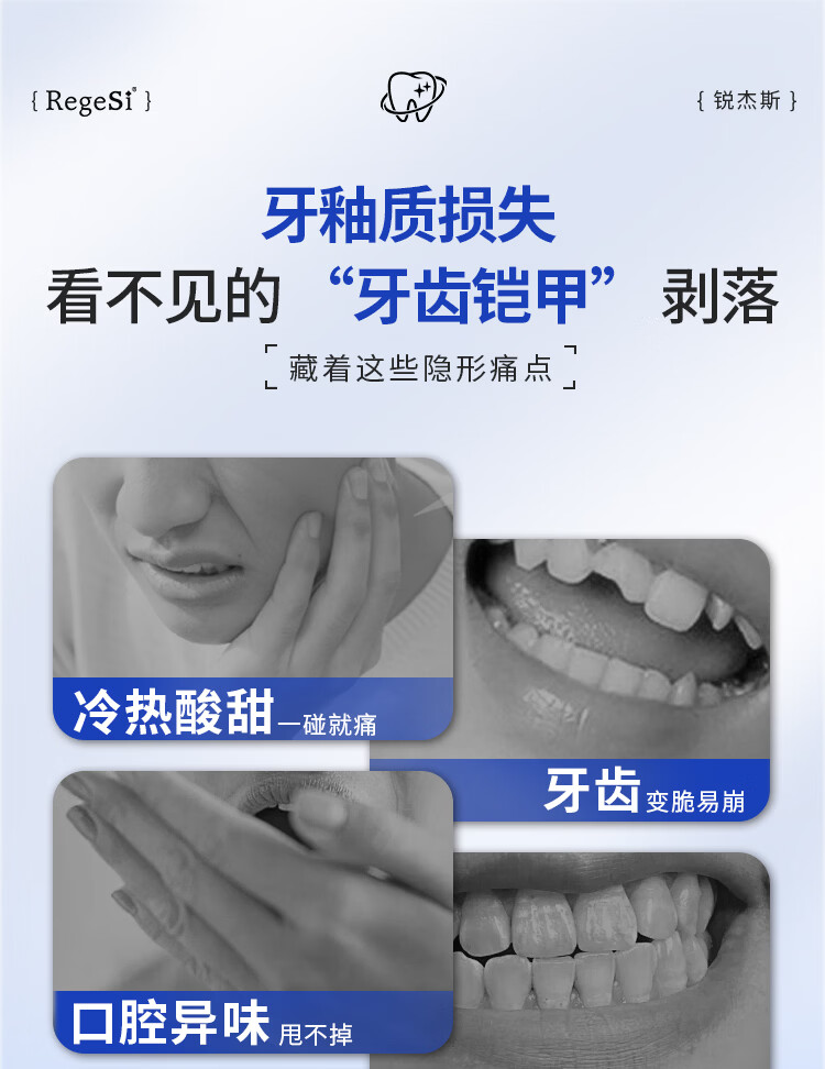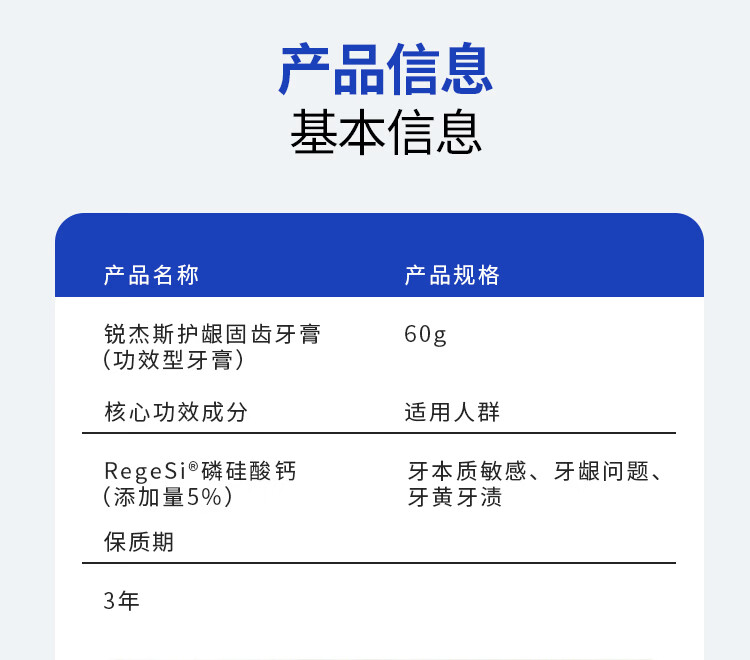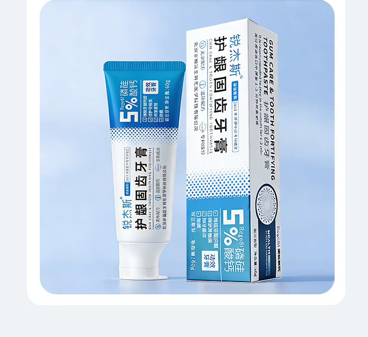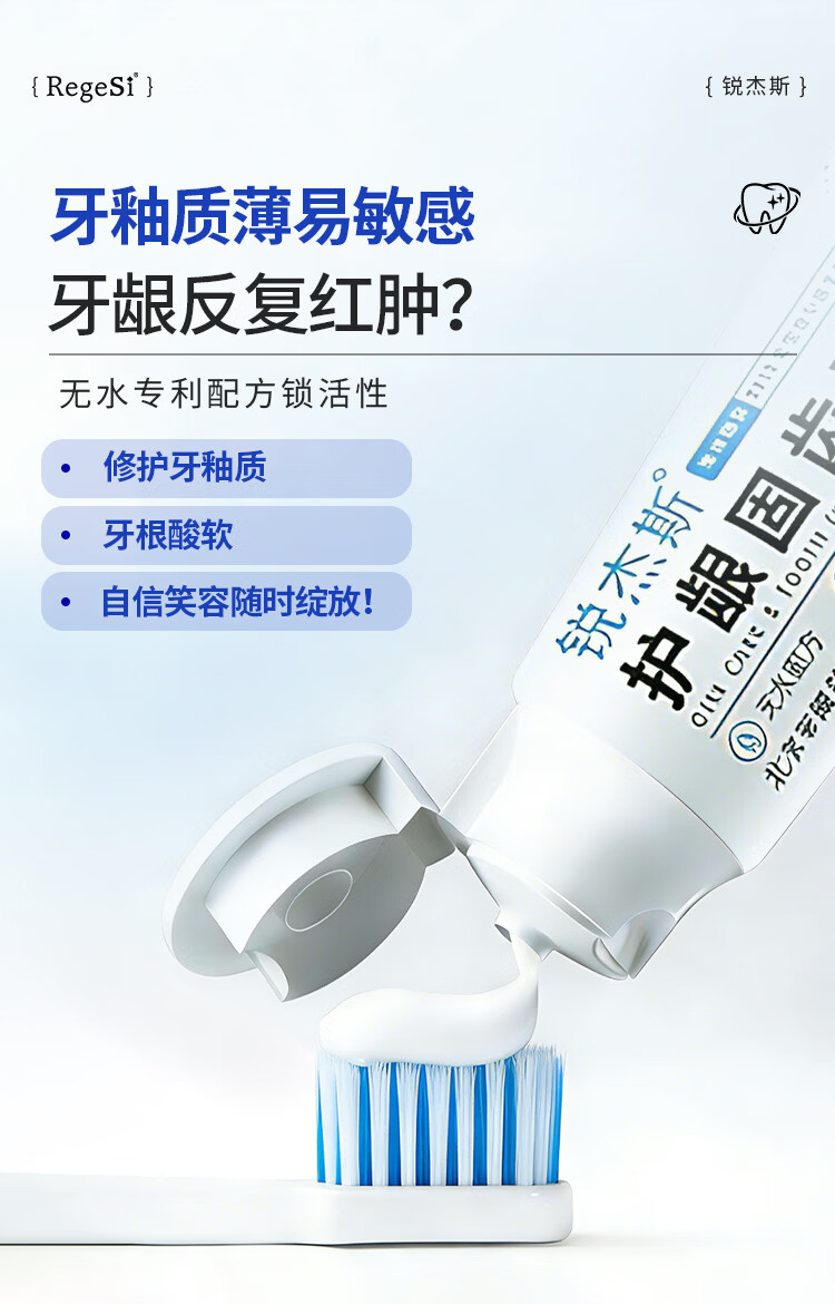 锐杰斯护龈固齿牙膏RegeSi磷硅酸钙修护牙釉保护牙龈防蛀防龋抑牙菌斑 60g*2支 【赠15g牙膏1个】