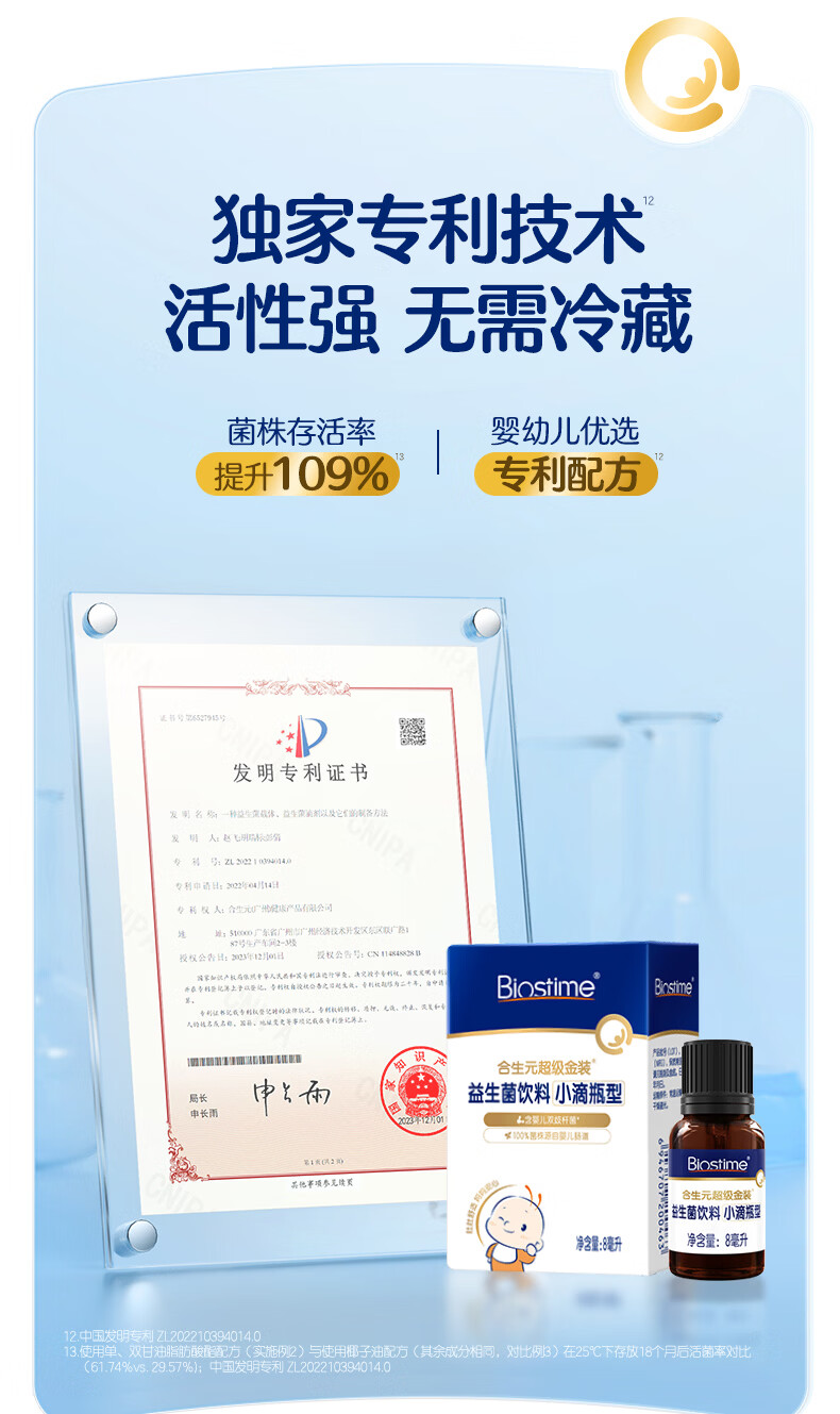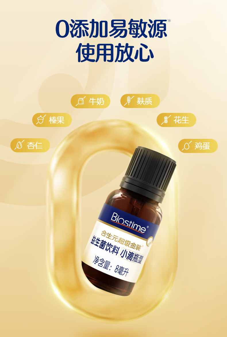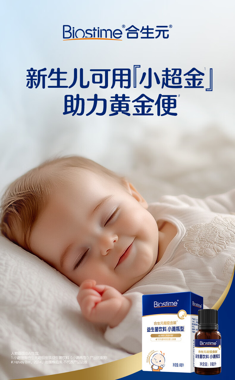 合生元(BIOSTIME)新生儿益生菌婴幼儿小超金滴剂0-3个月肠胀气 含双歧杆菌8ml 滴剂 8ml*1瓶 【0岁可用】