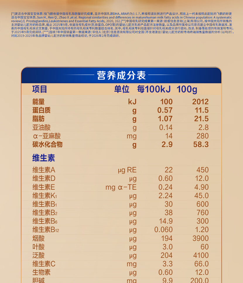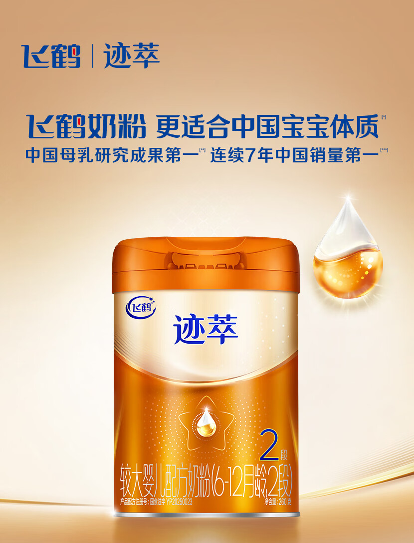 飞鹤迹萃 2段(6-12月龄)较大婴儿配方奶粉听装260g