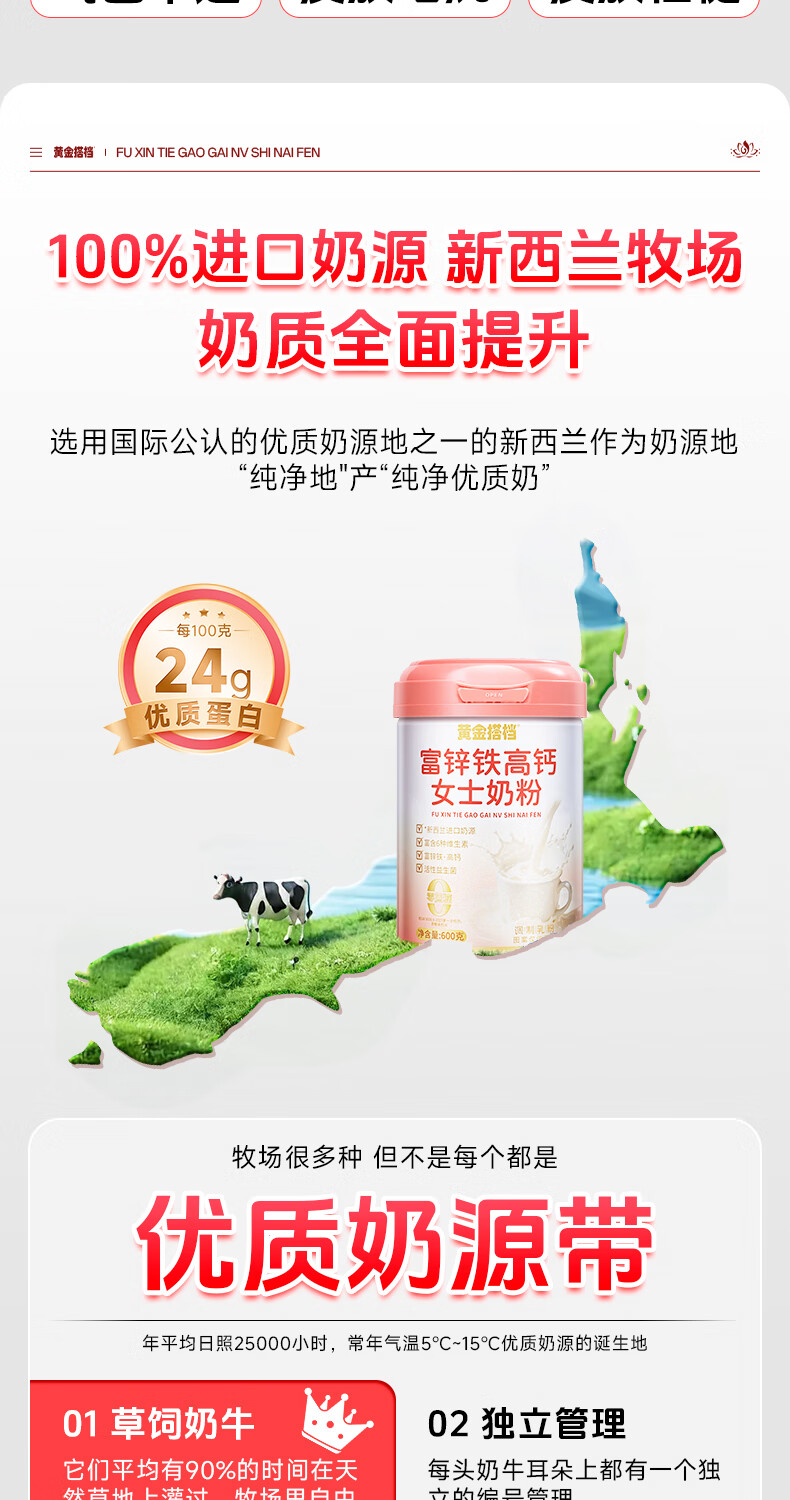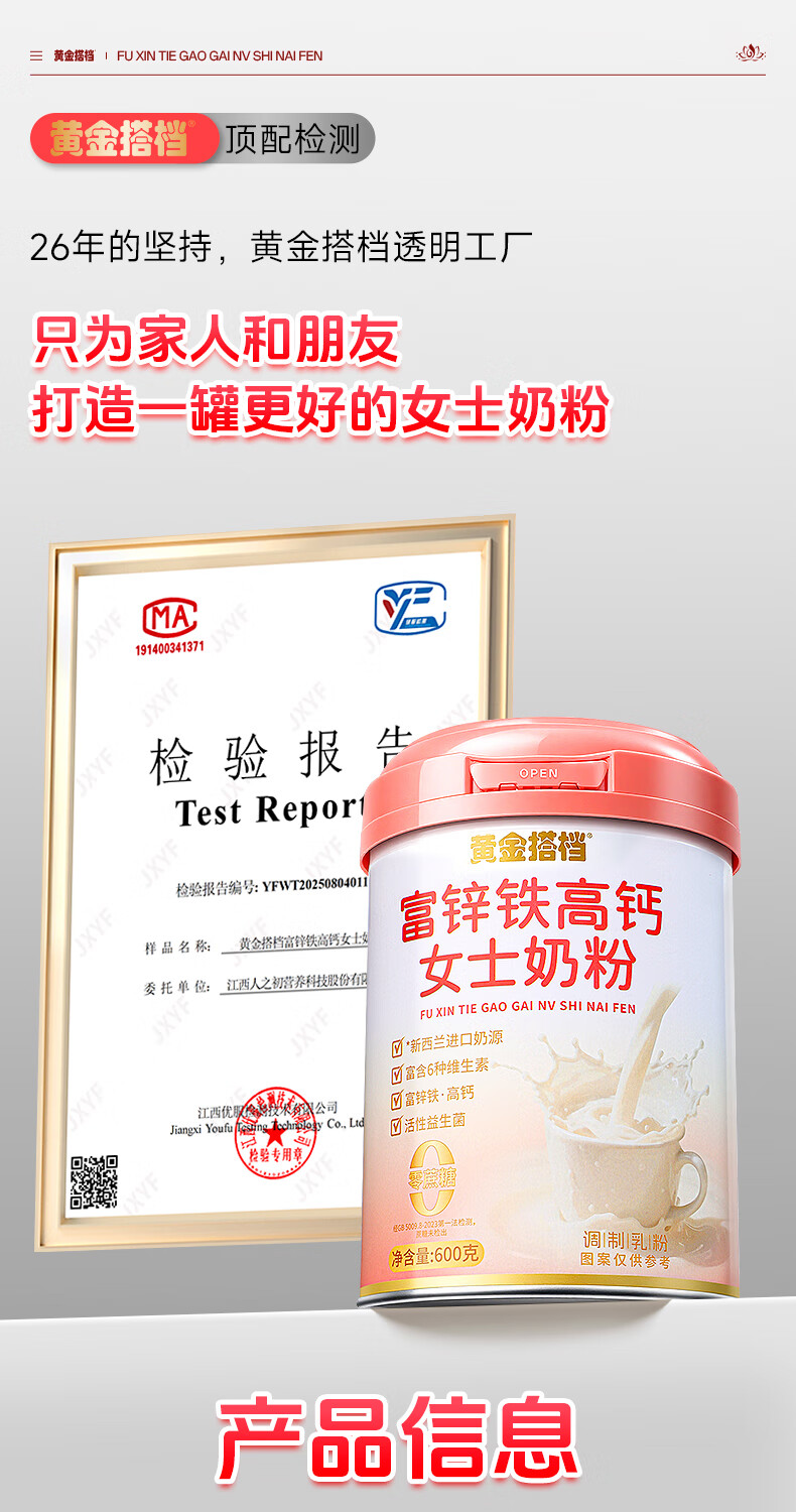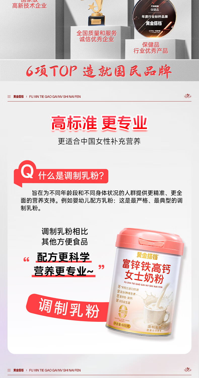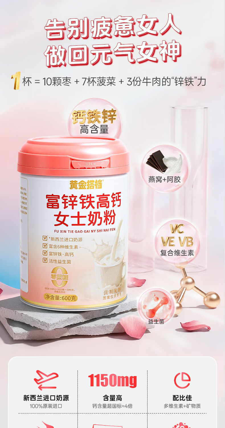 黄金搭档富锌铁高钙女士奶粉0糖孕妇强免疫补气血含脱脂乳粉睡眠足600g*1