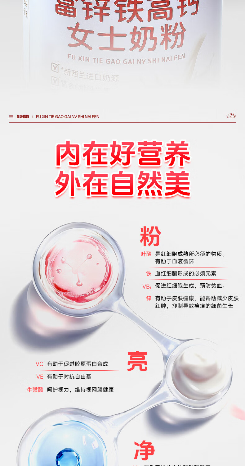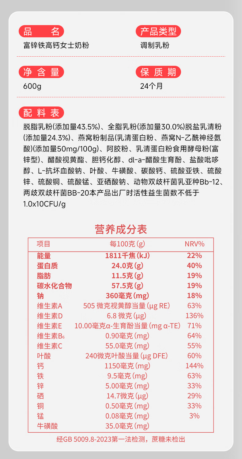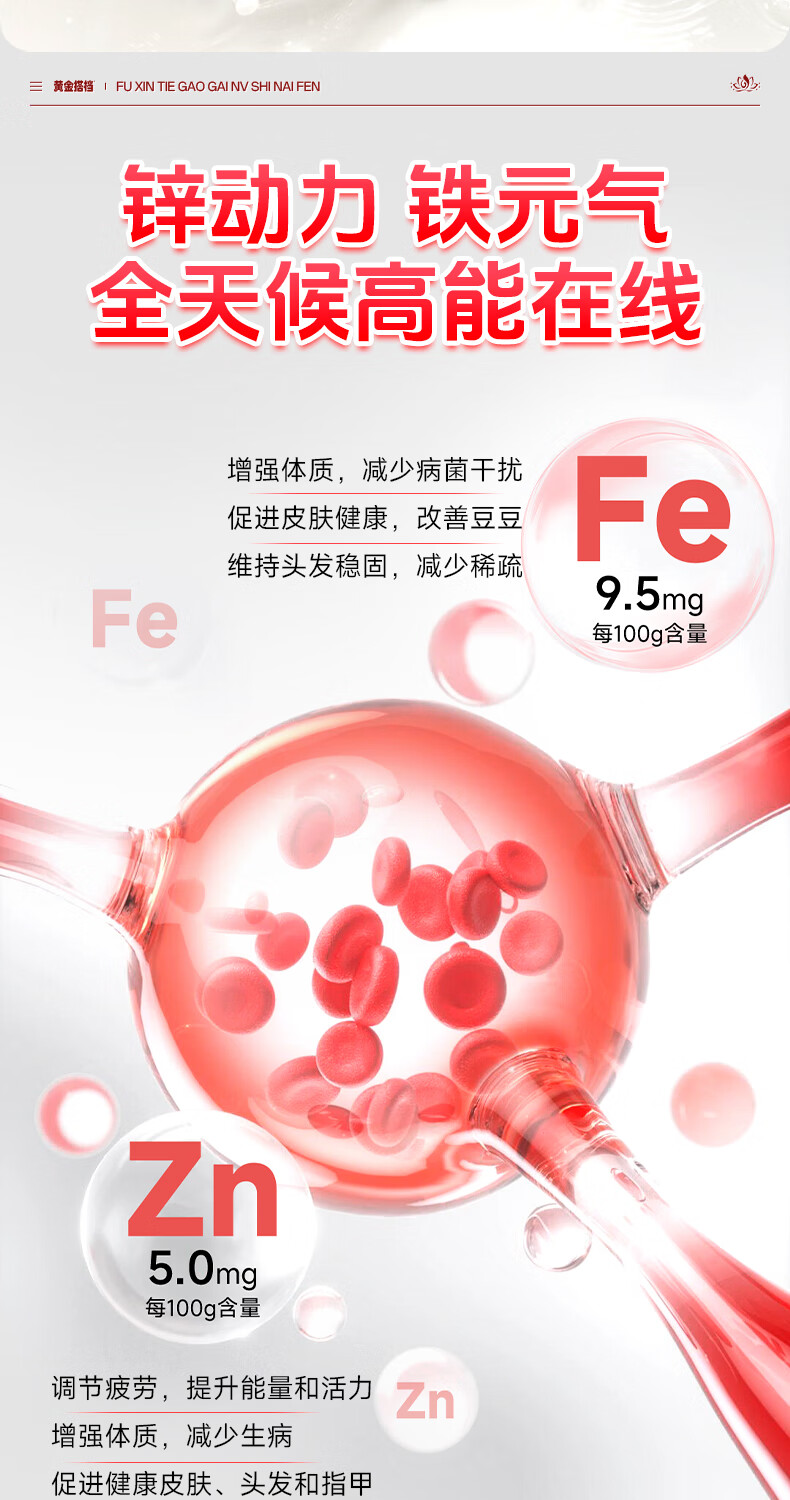 黄金搭档富锌铁高钙女士奶粉0糖孕妇强免疫补气血含脱脂乳粉睡眠足600g*1