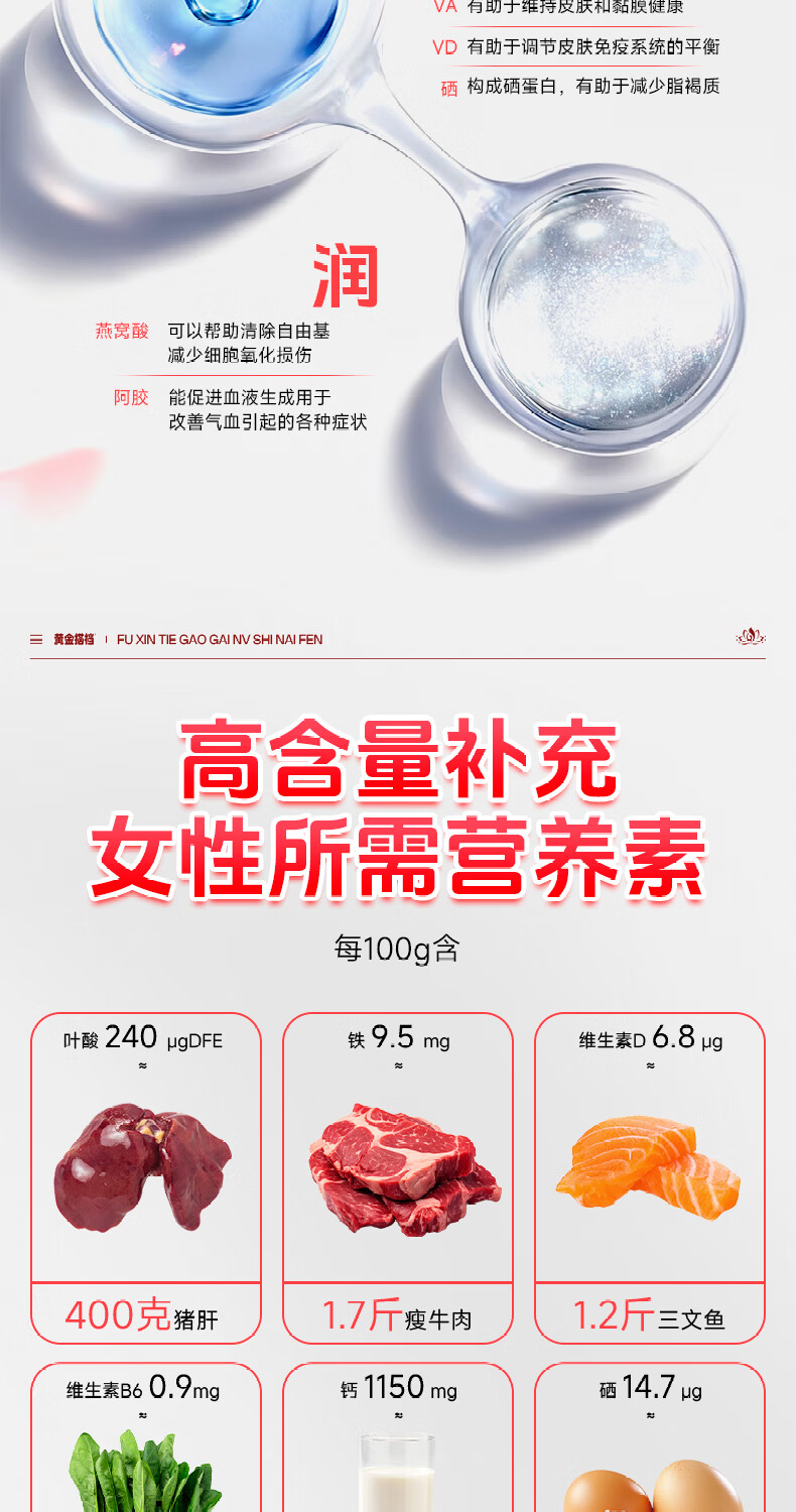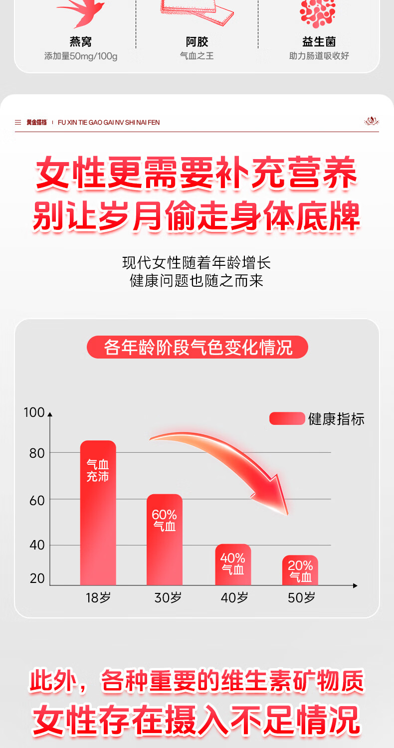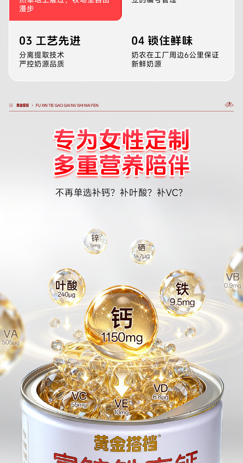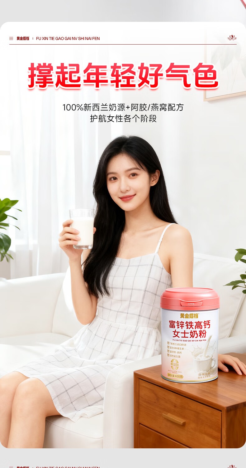 黄金搭档富锌铁高钙女士奶粉0糖孕妇强免疫补气血含脱脂乳粉睡眠足600g*1