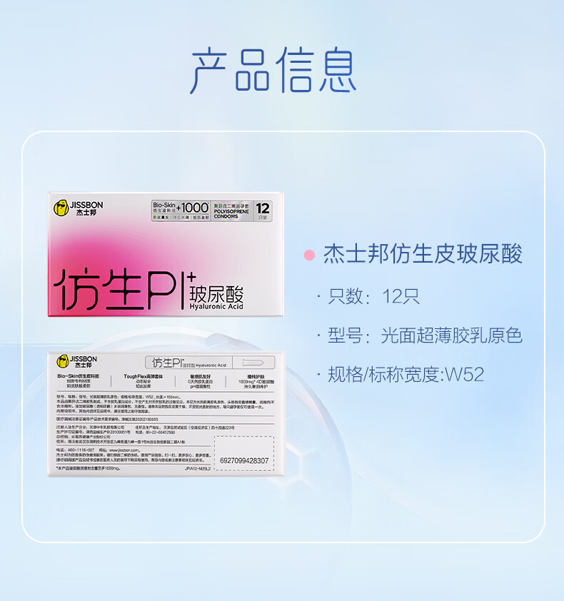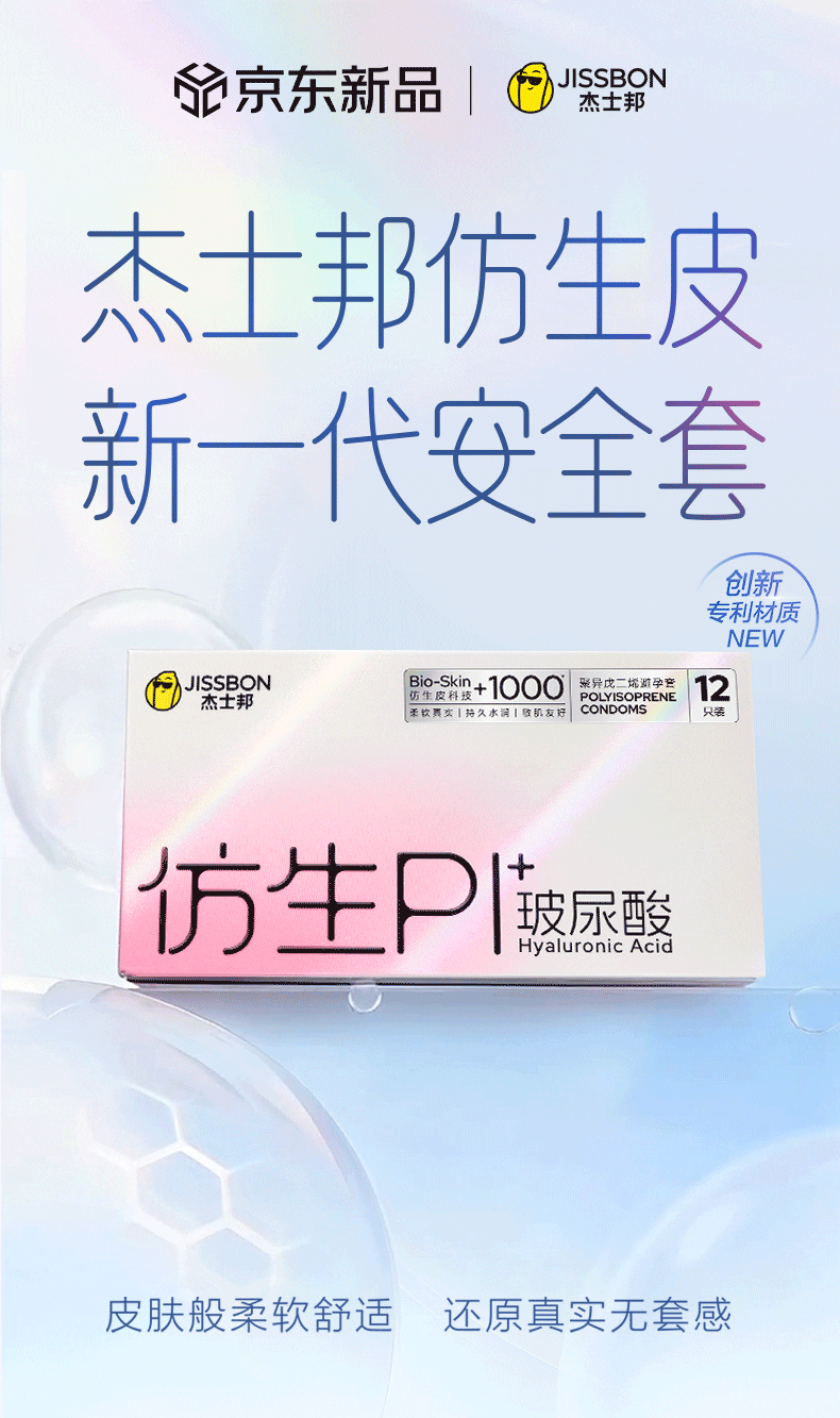 杰士邦避孕套仿生皮PI玻尿酸12只安全套套超薄防过敏男用情趣用品byt