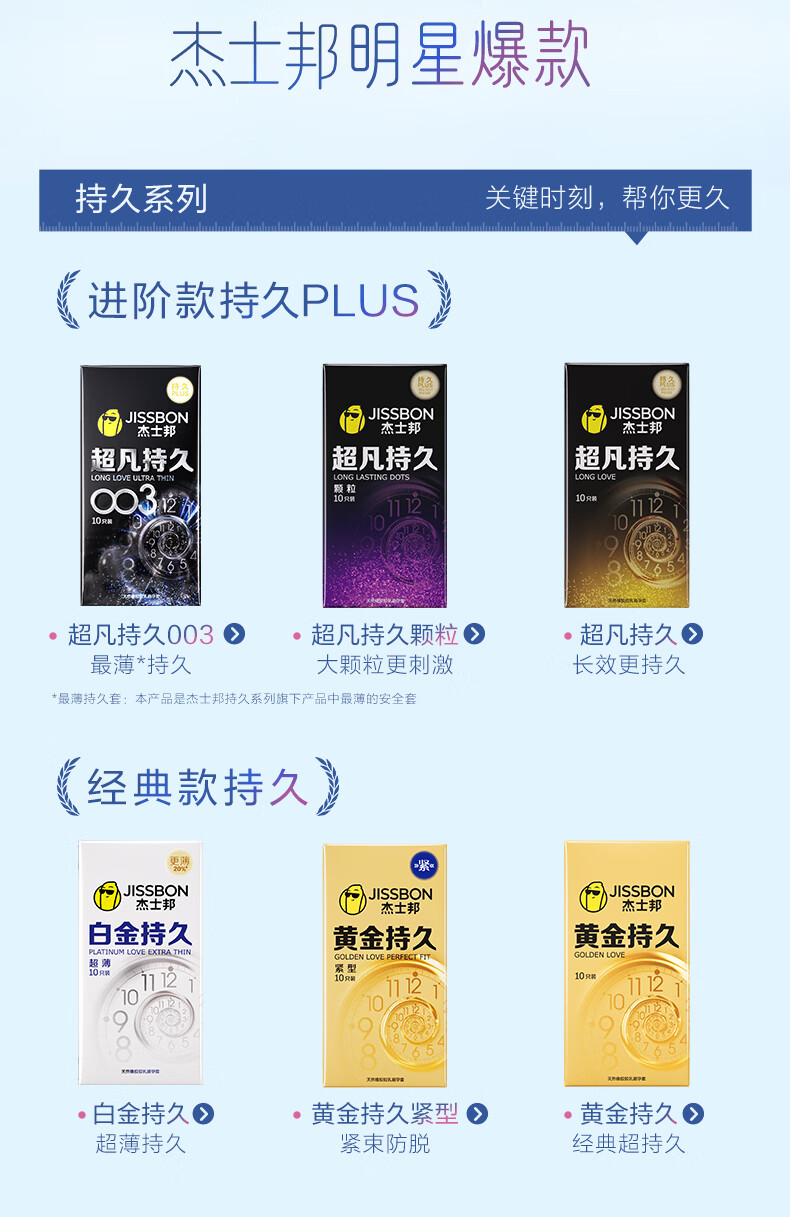 杰士邦超凡三体持久10只延时避孕套男专用持久防早泄敏感情趣超薄安全套