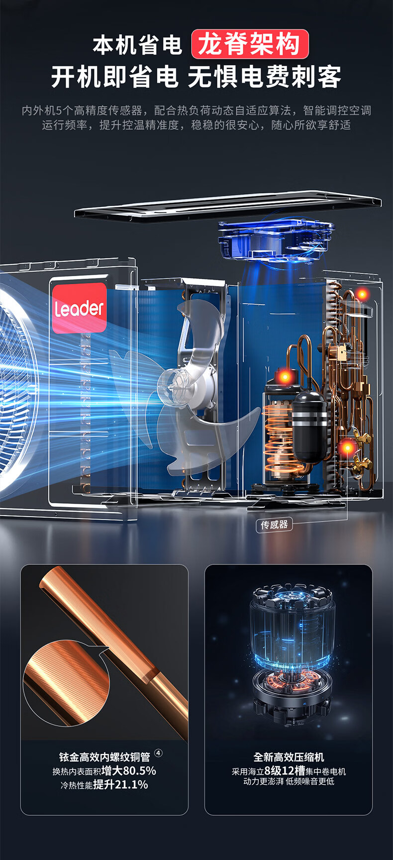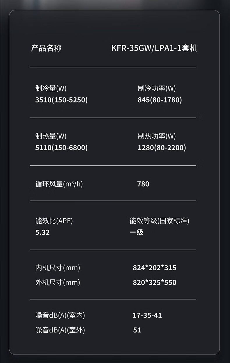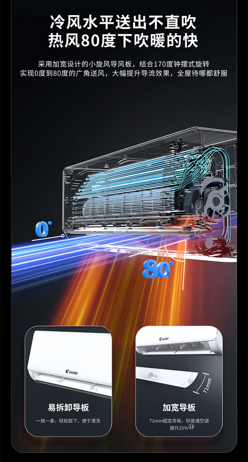 Leader海尔统帅懒人神机新风款双排铜管蒸发器1.5匹一级变频冷暖空调挂机舒适风KFR-35GW/LXF1-1