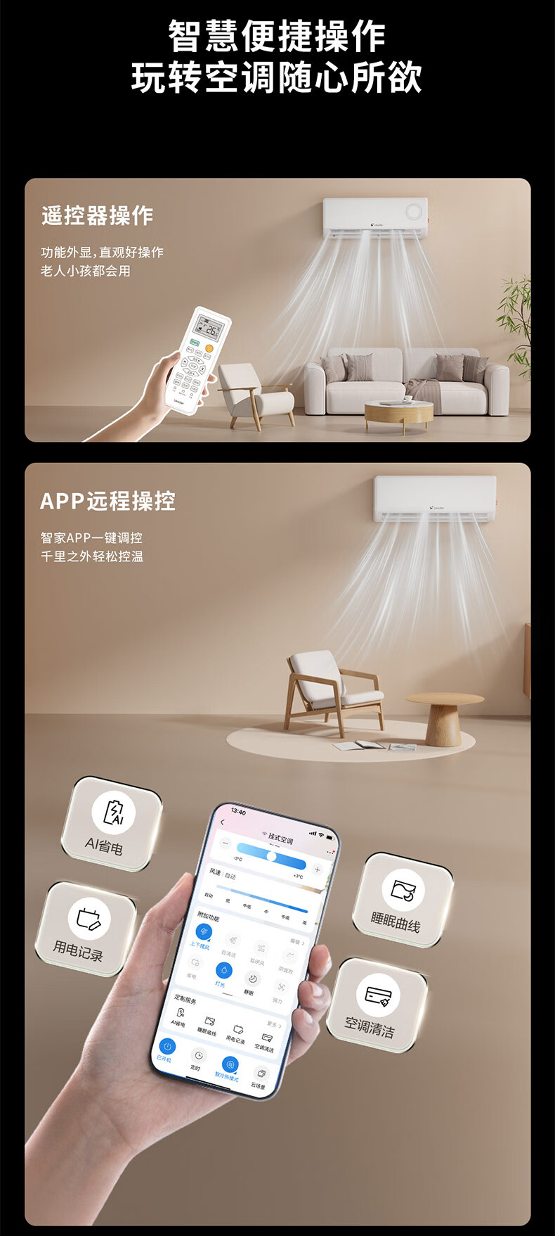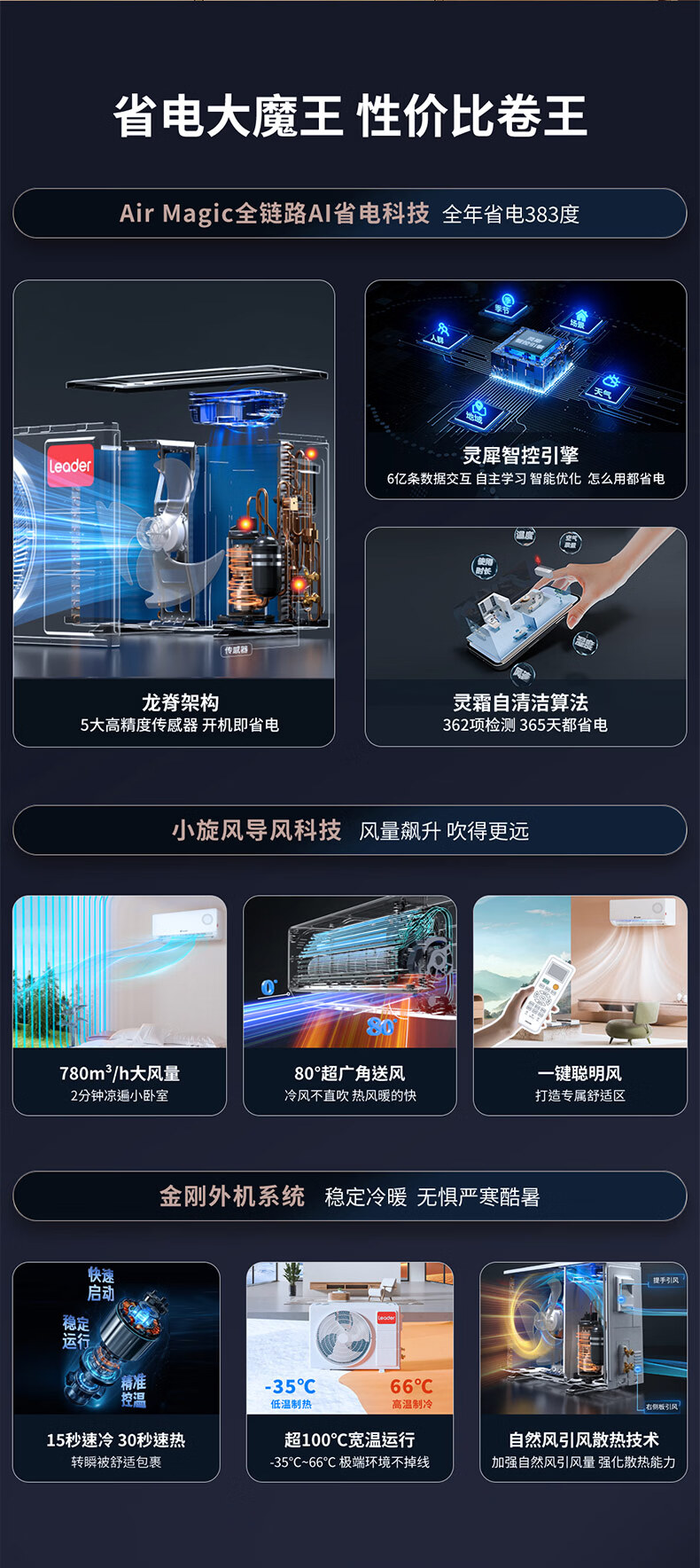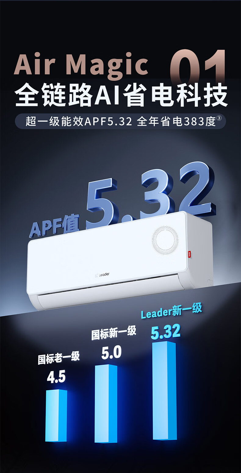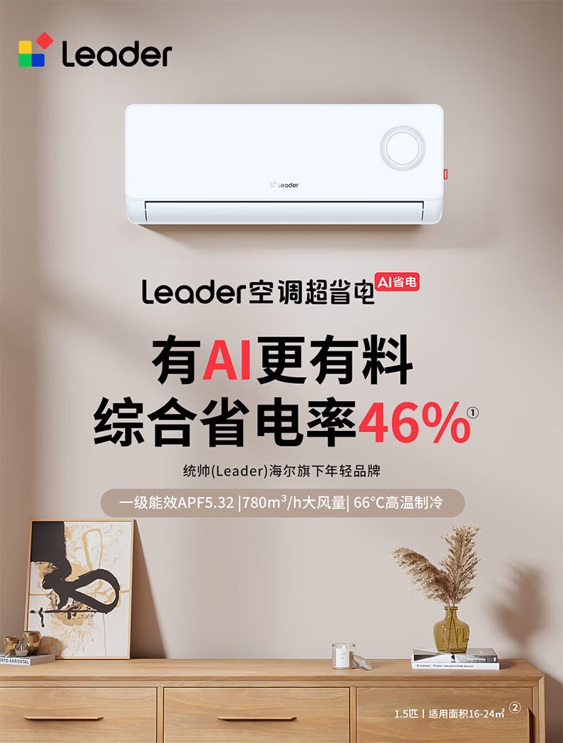 Leader海尔出品统帅空调超省电1.5匹空调挂机壁挂式AI省电一级变频节能自清洁KFR-35GW/LPA1-1